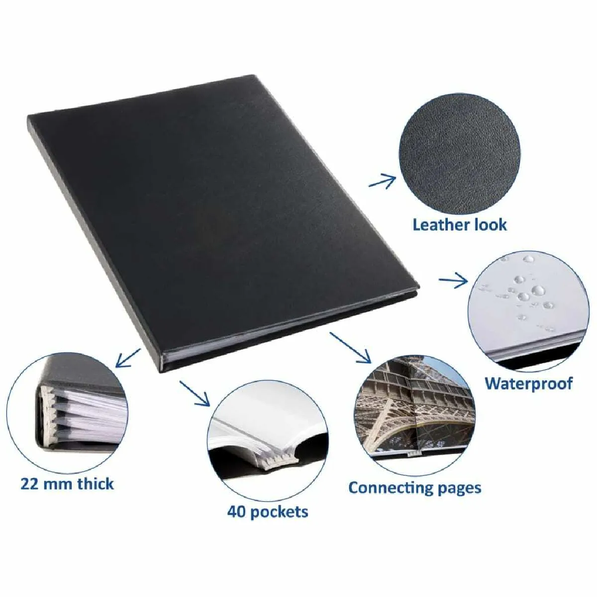 Dossier A4 - 40 pochettes - Couvertures robustes - Polypropylène transparent - Couleur noir