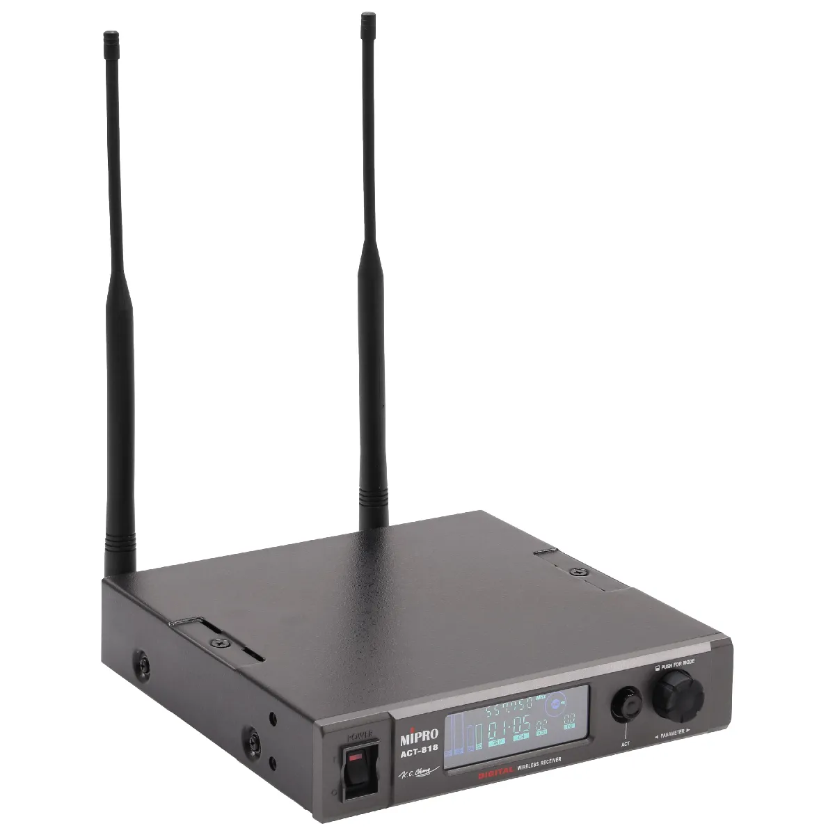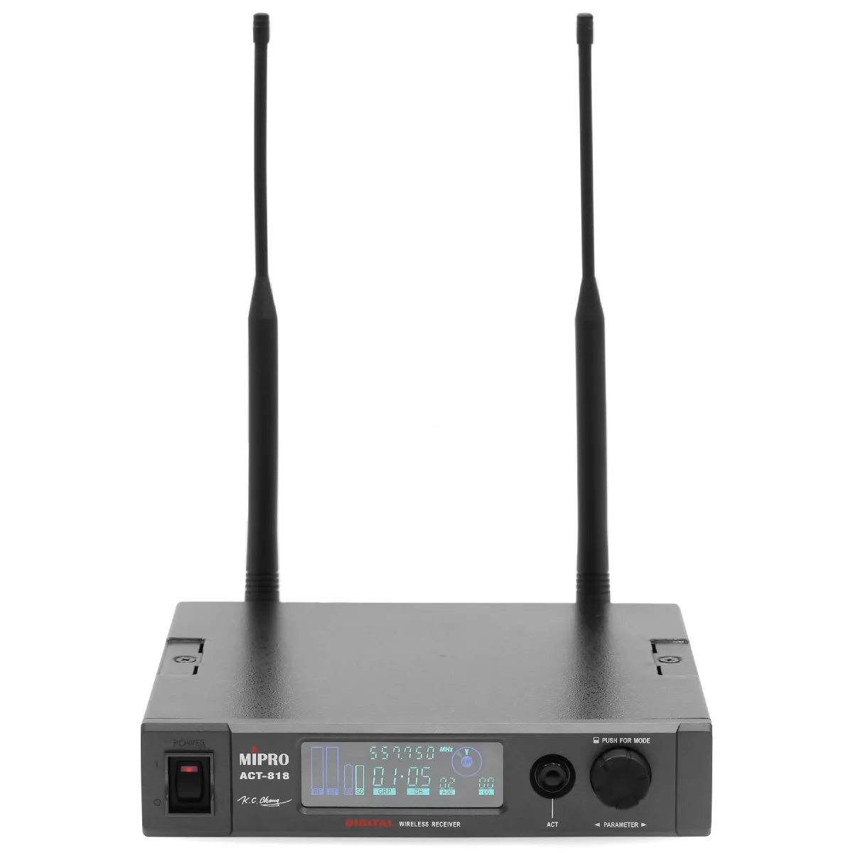 L'ACT 818 est un récepteur sans fil numérique, offrant 232 canaux de transmission dont 16 programmable par l'utilisateur, vendu seul il nécessite l'utilisation d'émetteurs tel que ACT 80H ou ACT 80T.