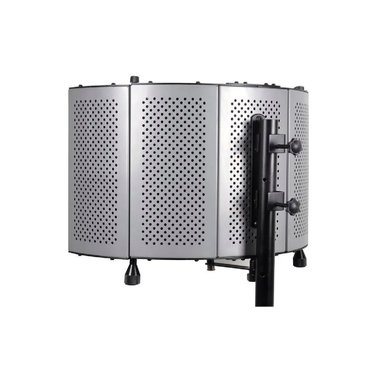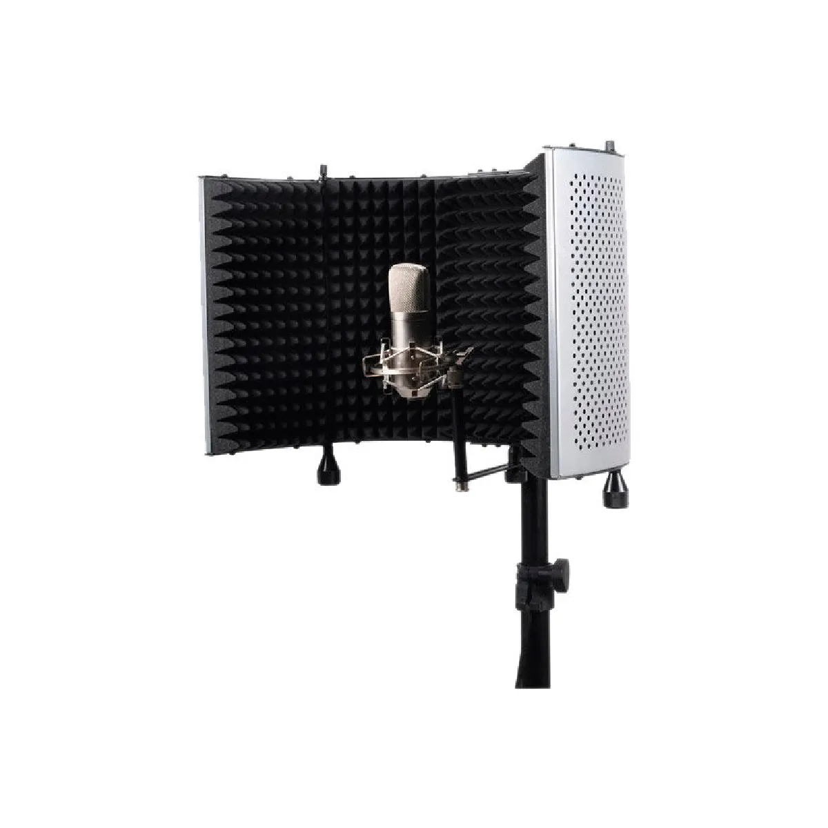 Le PF 70 SILVER est le must en matière de filtre anti-bruits dernière génération avec sa conception très innovante et soigné. En effet, il dispose de deux parois réglables afin d’ajuster au mieux vos prises de son.Sa fixation sur un stand est également très simple et facile puisqu’il s’adapte aussi bien sur un pied de micro que sur un pied d’enceinte classique de sonorisation.