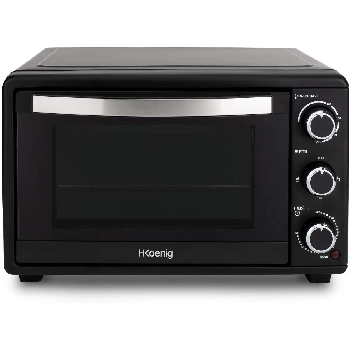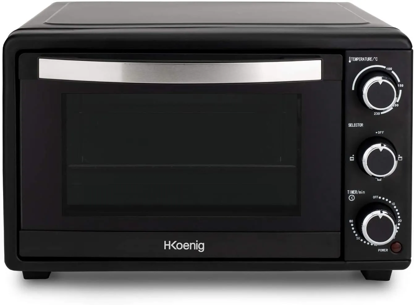 Mini four électrique multifonction - 1500 W - 4 modes de cuisson - Thermostat jusqu’à 230°C - Minuterie mécanique 60 min - Arrêt automatique avec signal sonore