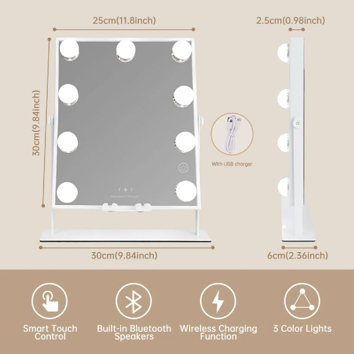 Service à la clientèle: Nous prendrons l'entière responsabilité de tout problème de qualité. Si vous avez des problèmes avec le miroir de maquillage Bluetooth, n'hésitez pas à nous contacter.