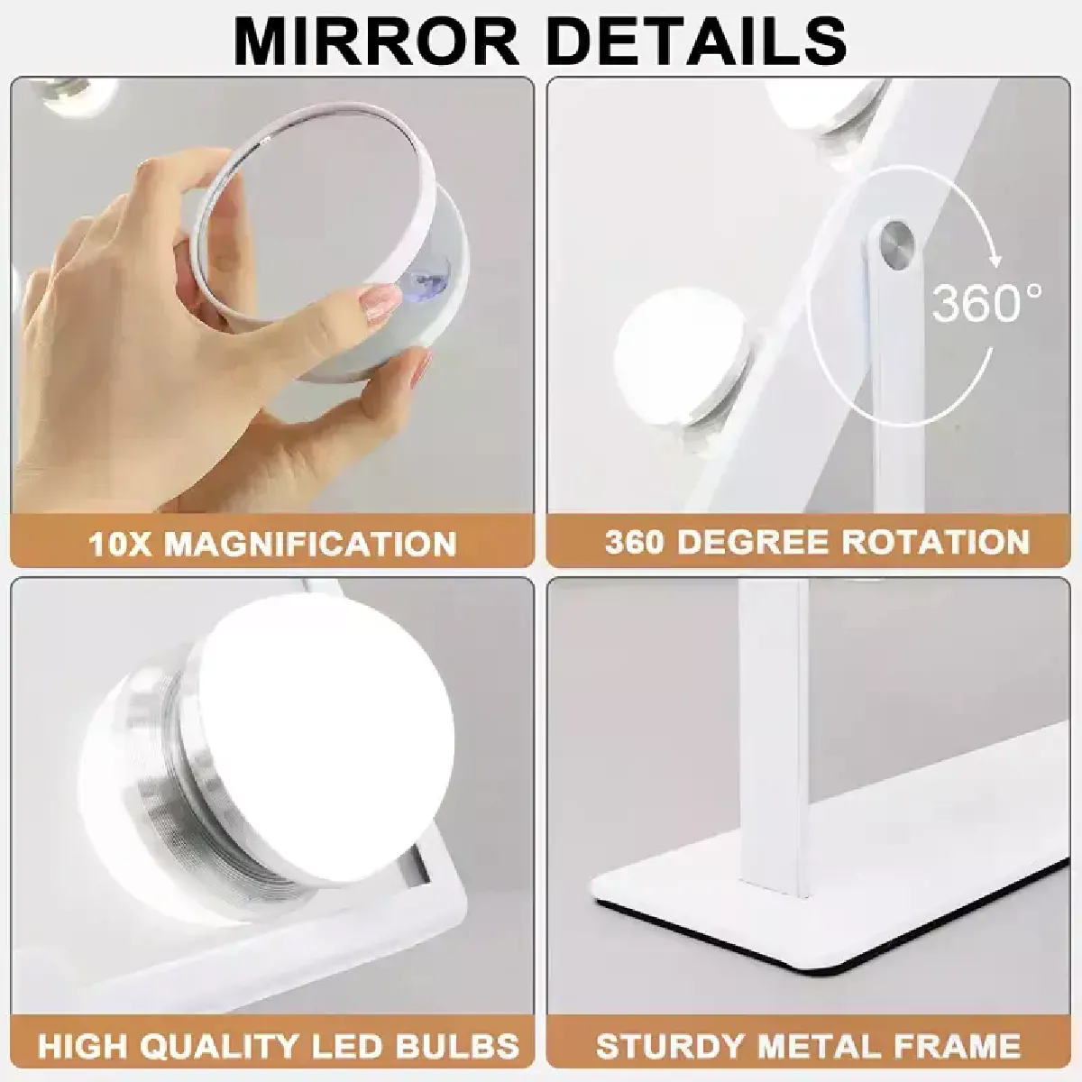 Taille optimale: 9,84 pouces X 18,81 pouces, la taille optimale du miroir de maquillage Hollywood peut économiser plus d'espace sur le Bureau.