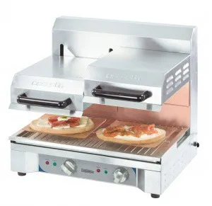 Salamandre de cuisine professionnelle - Double plafonds réglables - Résistances quartz - Thermostats indépendants - Plateau inférieur amovible - Fixation murale incluse