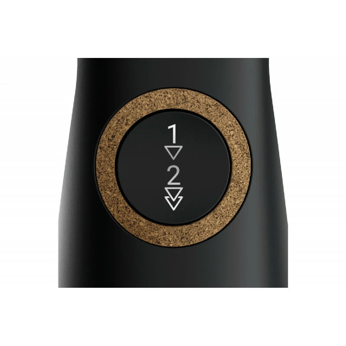 Le moteur de 600 W délivre une puissance suffisante pour des purées, veloutés et sauces sans effort. Les quatre lames de qualité supérieure améliorent l'aspiration des aliments et favorisent une texture régulière. Les deux vitesses pour ajuster la finesse de mixage permettent de passer d'un hachage grossier à un rendu plus lisse selon la recette. Le pied anti-éclaboussures limite les projections afin de préserver la propreté pendant la préparation. L'ensemble fonctionne sur secteur pour une alimentation continue et stable adaptée aux longues sessions de mixage.