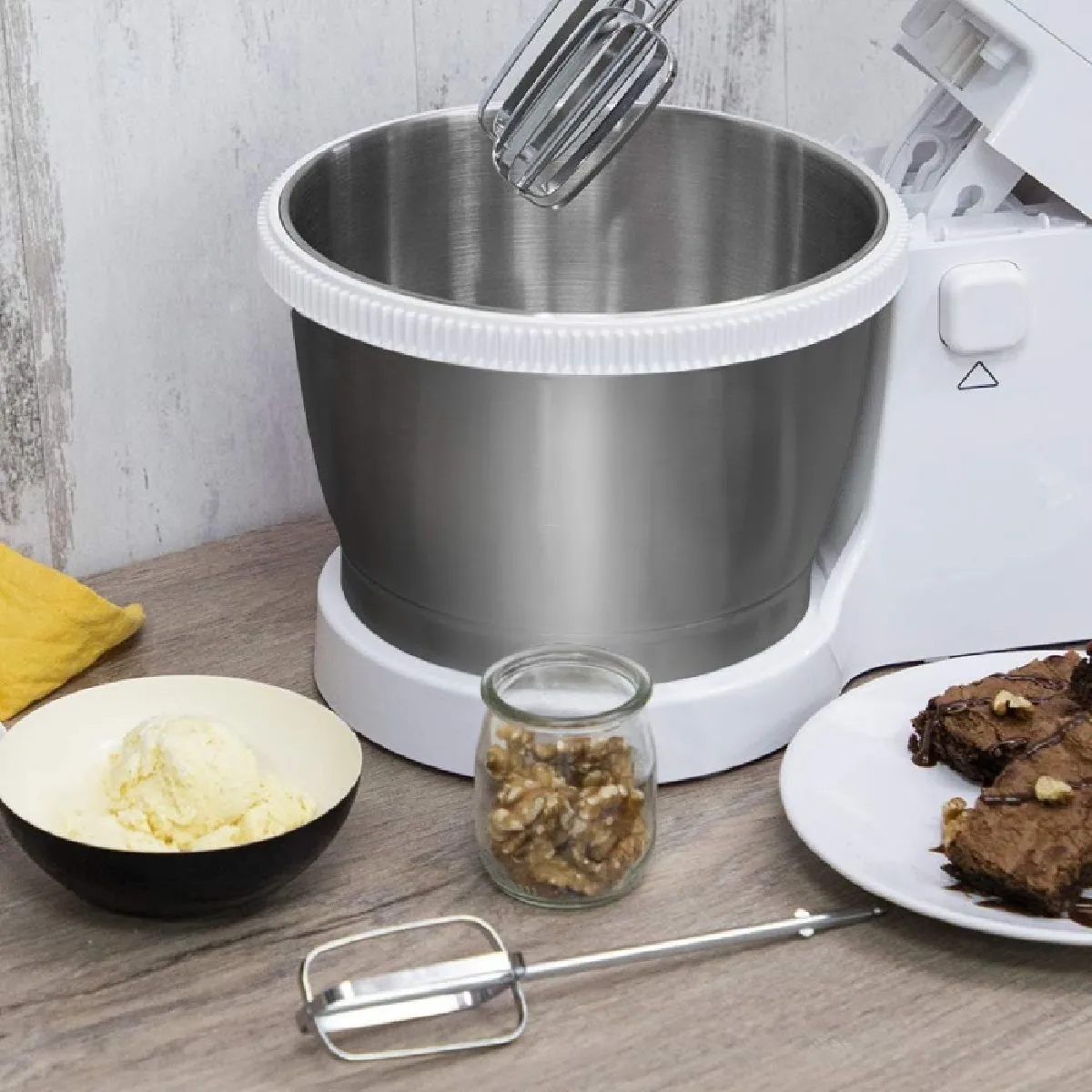 Le bol en acier inoxydable de 3,5 litres offre un volume confortable pour des gâteaux, crèmes et pâtes de taille familiale, tout en garantissant une rotation auto-centrée des ingrédients pour un résultat homogène. Avec 5 niveaux de vitesse, il devient simple de passer d'une émulsion légère à un pétrissage soutenu, et la fonction Turbo fournit une impulsion courte et puissante pour resserrer la texture. Le moteur de 500 W maintient la cadence sans variations inutiles, afin de limiter les surchauffes et d'assurer une consistance régulière sur des préparations successives.