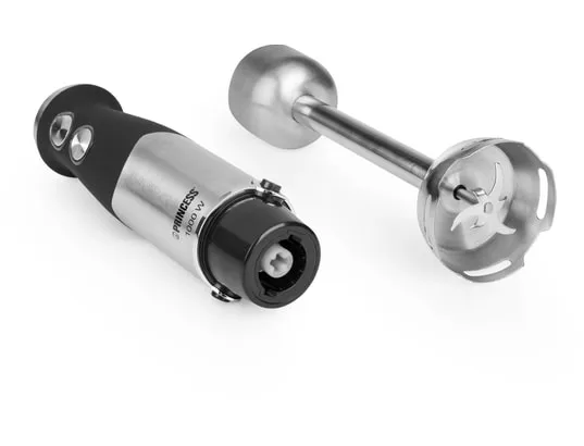 La préparation des soupes, smoothies et hachages rapides gagne en efficacité grâce à une motorisation de 1000 W et un pied XL en acier inoxydable. Ce mixeur plongeant PRINCESS propose 25 vitesses avec variateur pour ajuster la texture, d'une émulsion légère à une purée onctueuse. Le bol doseur fourni facilite le mesurage et le service. Les lames en inox à 4 couteaux assurent une coupe régulière, tandis que le pied amovible simplifie le nettoyage et l'échange d'accessoires. L'ensemble est pensé pour un usage quotidien avec poignée ergonomique et éléments compatibles lave-vaisselle.