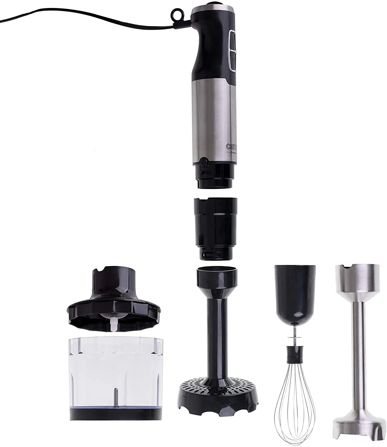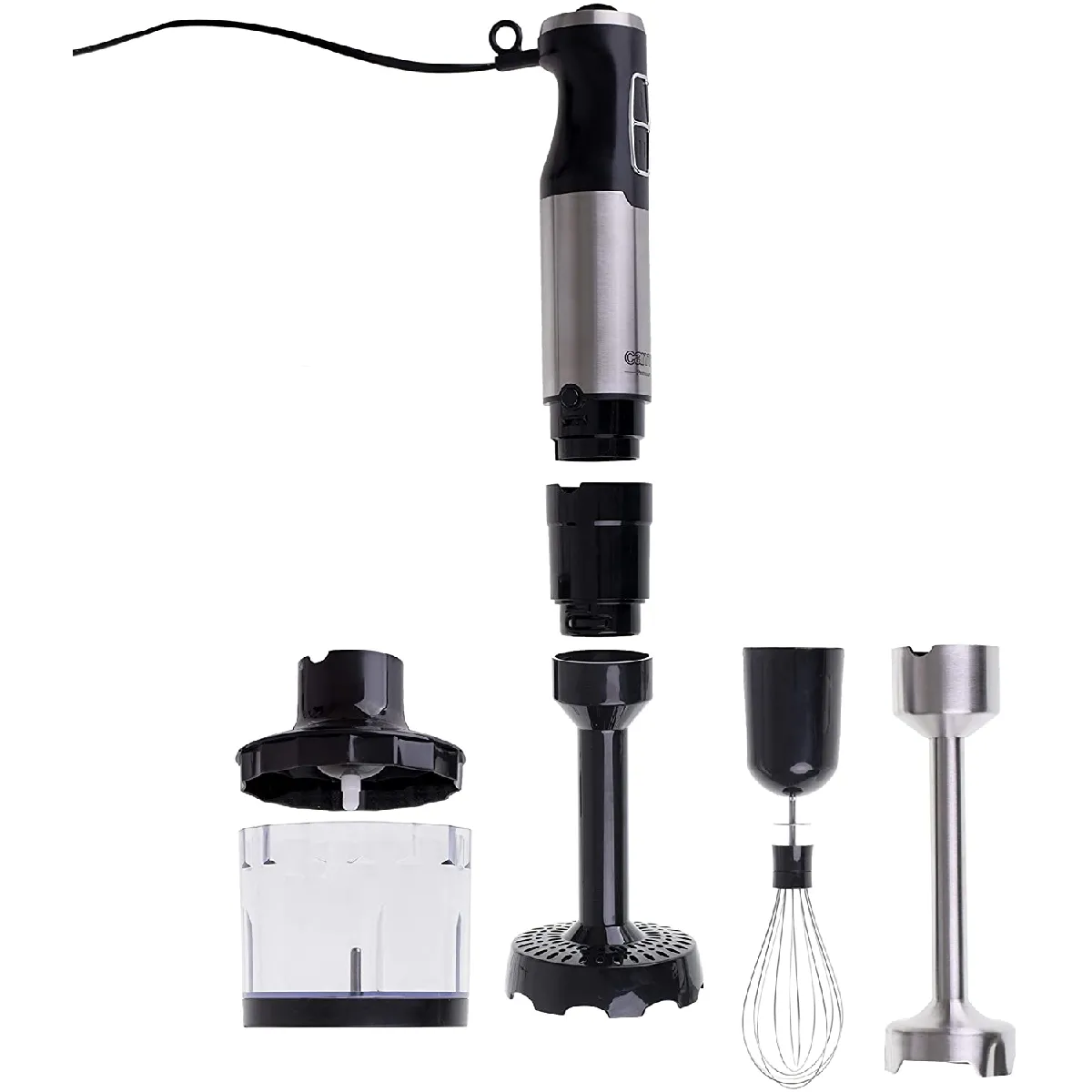 Mixeur plongeur multifonction - 1600 W - 2 vitesses avec variateur - Pied amovible - Lames inox - Fonction Turbo - Bol et accessoires en acier inoxydable