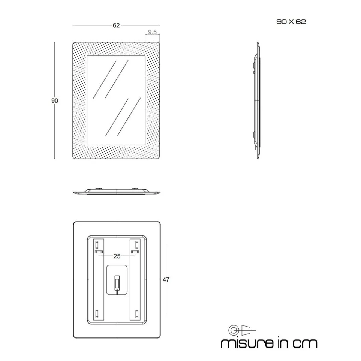 - Forme rectangulaire 90 x 62 cm : surface de vision large au-dessus du plan vasque