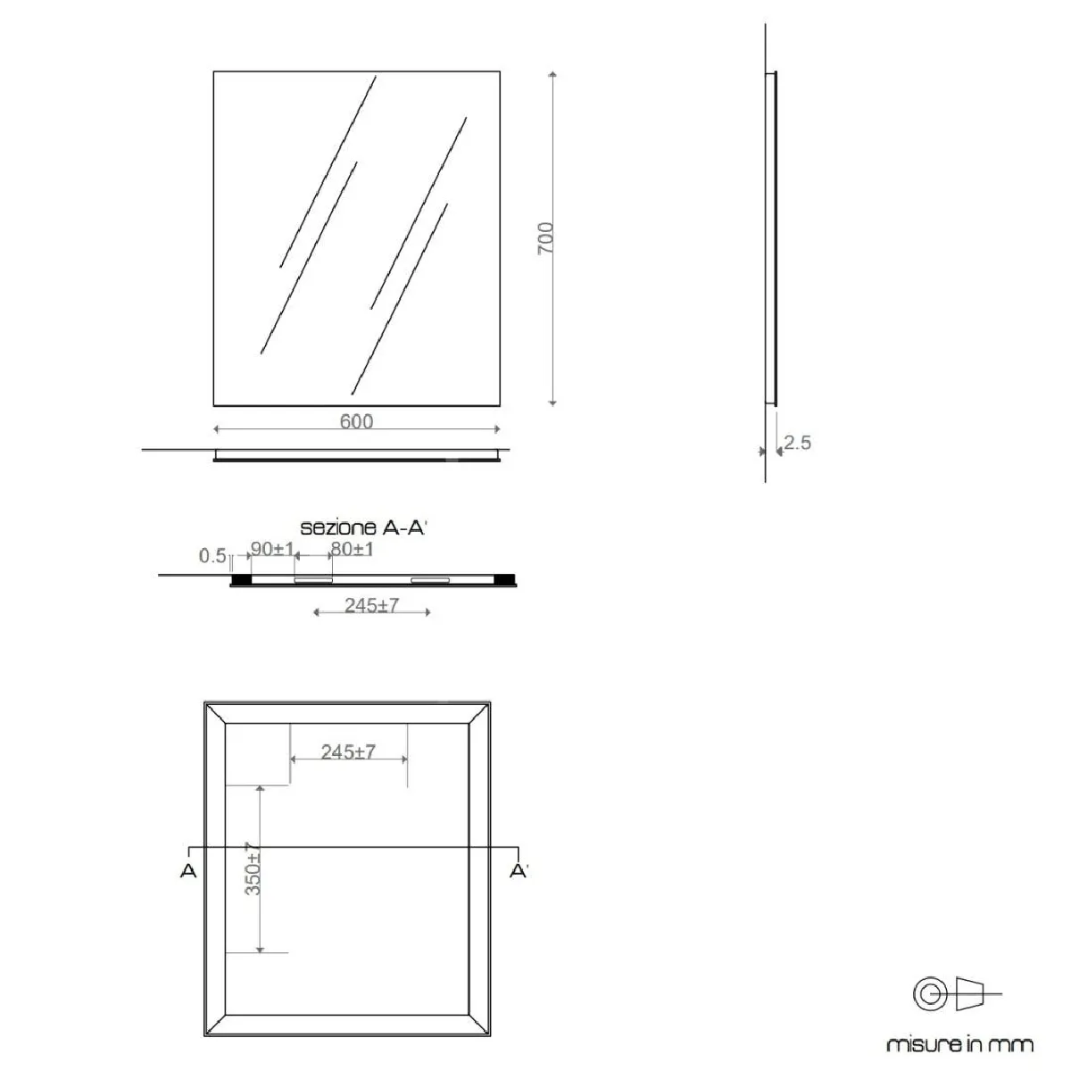 - Format rectangulaire 60 x 70 cm pour une visibilité confortable au-dessus du lavabo