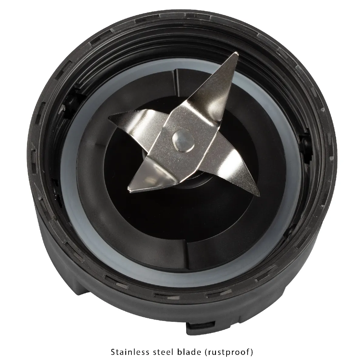 - - Mix & Go" : mélangez votre smoothie préféré en quelques minutes seulement. Grâce au bouchon pratique, vous pouvez emporter votre smoothie fraîchement préparé au travail, à l'école ou au sport.