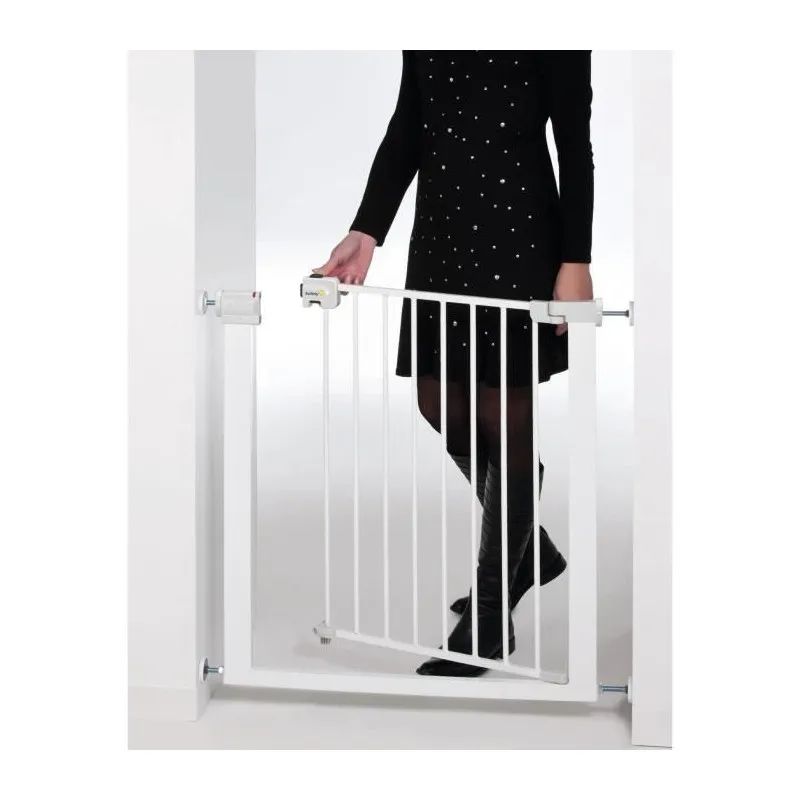 La plage d'extension de 80 à 136 cm permet d'équiper différents points de passage sans accessoires additionnels. Le mécanisme rétractile optimise l'encombrement : une fois ouverte, la barrière se replie pour libérer le passage sans gêner la circulation. L'ouverture manuelle évite toute dépendance à l'électronique ; vous bénéficiez d'un fonctionnement constant et prévisible pour les routines de la maison. Le format unisexe et la finition blanche favorisent une intégration neutre dans les intérieurs.