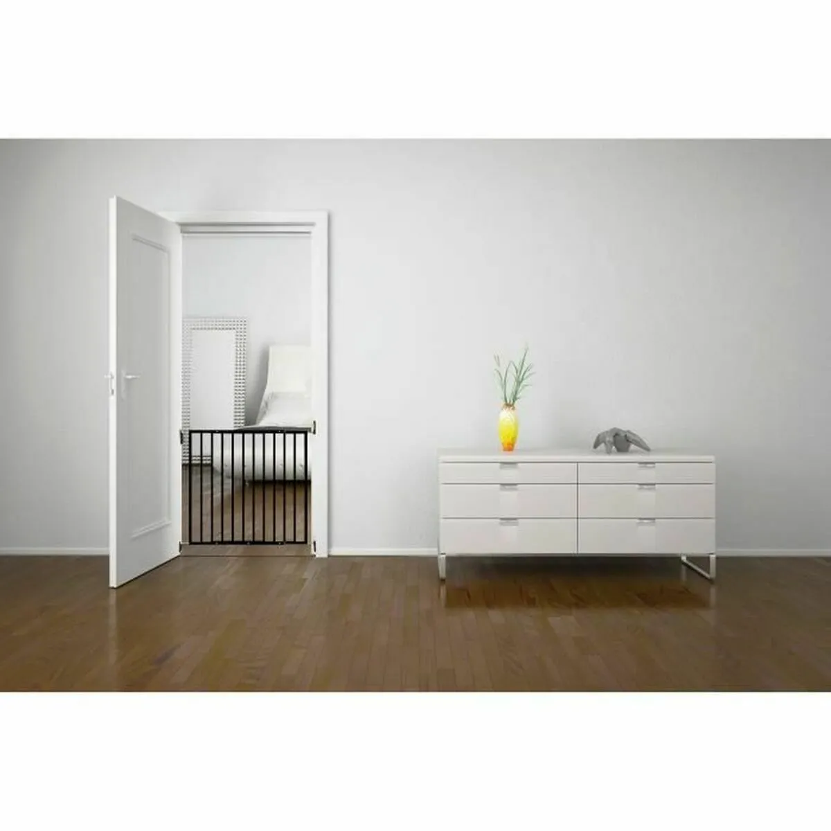 Le coloris noir apporte une présentation visuelle neutre et facile à assortir, convenant aux pièces de vie comme aux circulations. Destinée à un usage de type barrière de sécurité, elle aide à délimiter clairement l'accès à certaines pièces pour une meilleure organisation des espaces. Ses dimensions favorisent une manipulation simple lors de l'ajustement de la largeur, afin de répondre à l'évolution des besoins au fil du temps et selon les ouvertures à sécuriser.