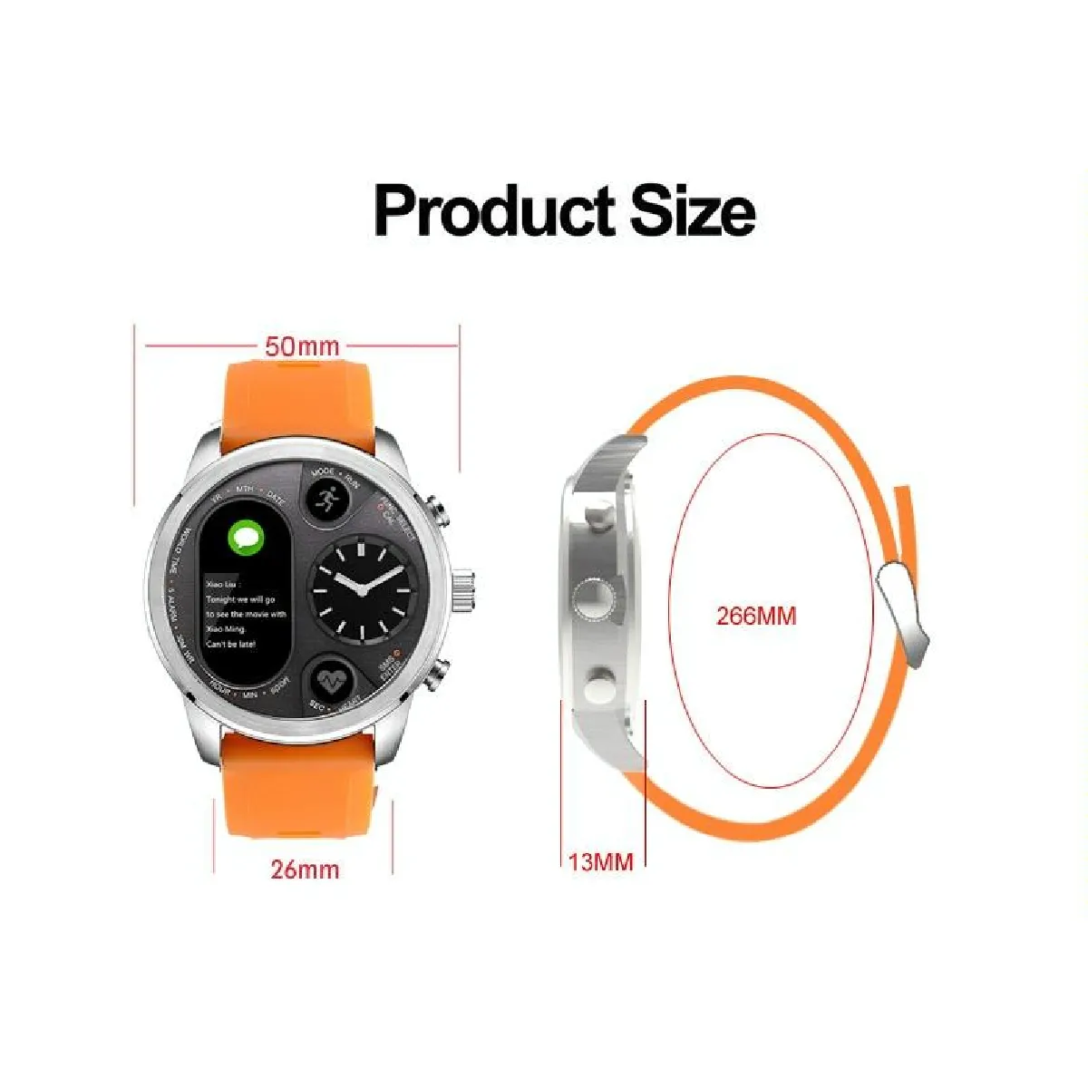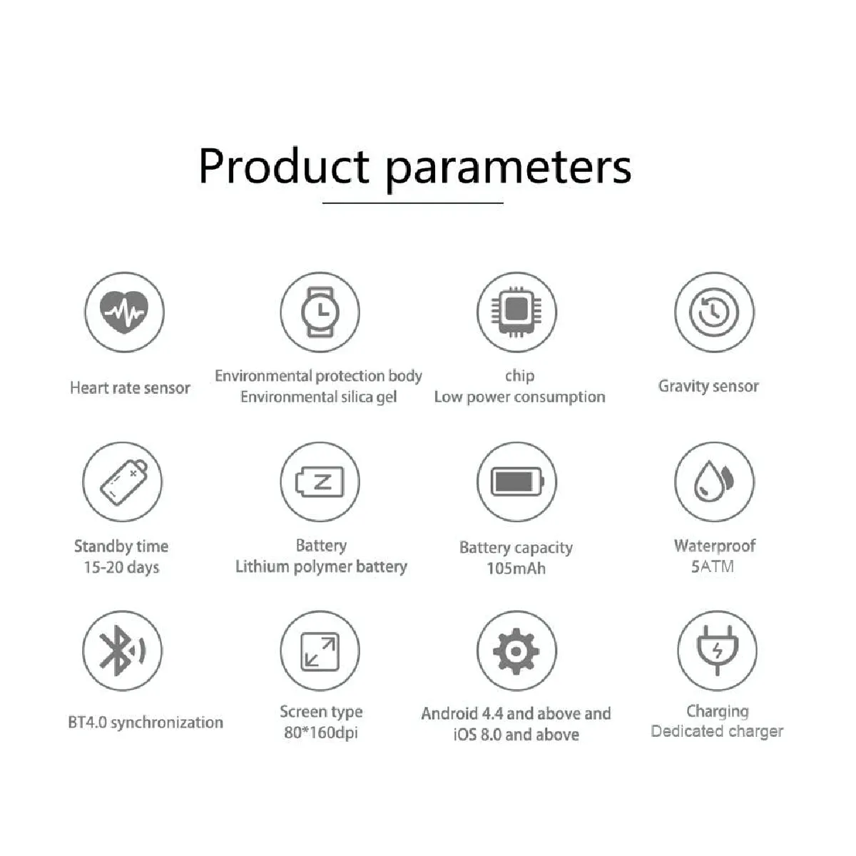 Montre connectée élégante et fonctionnelle, idéale pour suivre votre activité physique et rester connecté. Étanche IP68, elle offre une autonomie de 15 jours. Suivi de la fréquence cardiaque, podomètre, analyse du sommeil et rappels sédentaires. Écran LCD clair et notifications de messages et appels. Parfaite pour un usage quotidien et sportif.