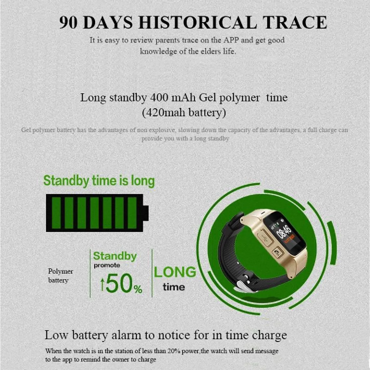 Montre connectée avec écran HD 1,22 pouces, GPS intégré et positionnement WiFi pour une précision optimale. Fonction d'appel bidirectionnel et surveillance vocale pour rester connecté en toute sécurité. Alarme de retrait et clôture de sécurité pour une tranquillité d'esprit. Suivi historique de 90 jours et alerte de batterie faible. Mode ne pas déranger et extinction à distance via l'application. Idéale pour les personnes âgées.