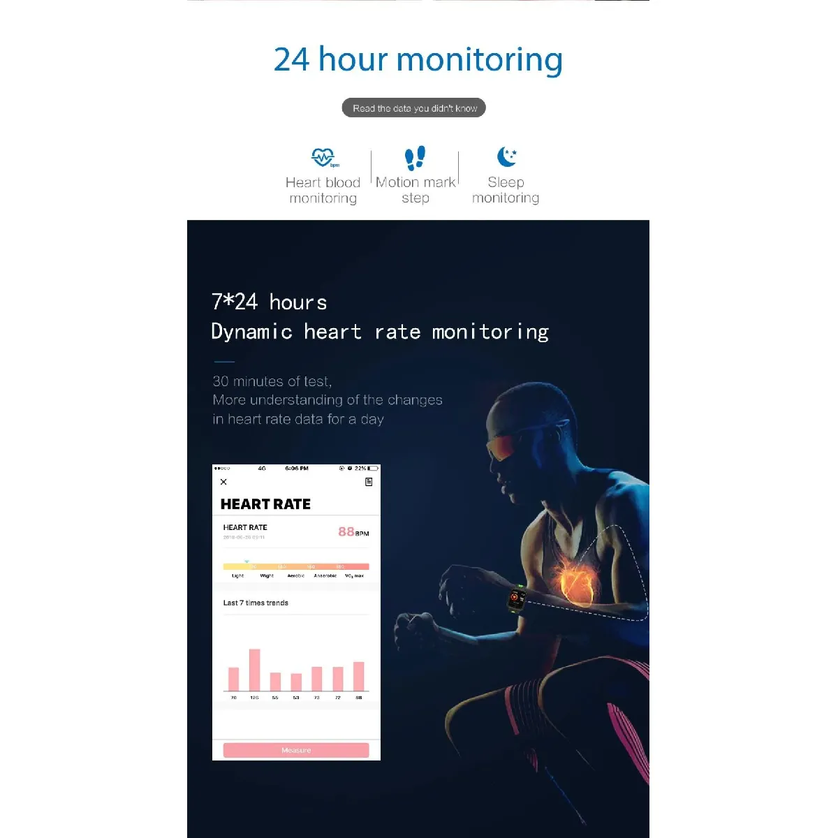 - Fonction : Noctilucent, Passomètre, Suivi du sommeil, Suivi de la fréquence cardiaque, Instruction 24 heures, Rappel de message, Musique interactive, Calendrier, Message push, Réveil, Télécommande, Mois, Mesure de la vitesse, Semaine, Rappel d'appel