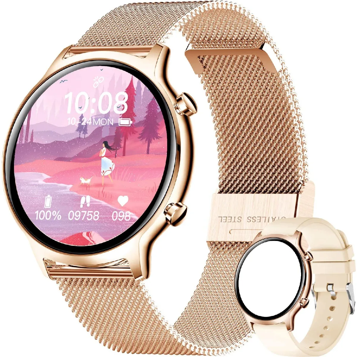 Montre connectée femme - Cardio et podomètre - Notifications - Écran HD - Bracelet interchangeable