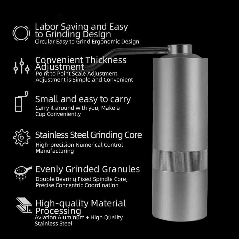 - Type : Moulin à café manuel avec meule conique