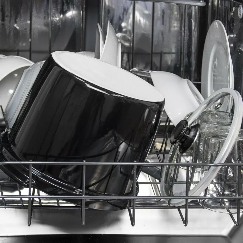 L'intérieur émaillé est lisse et facile à nettoyer ; il passe au lave-vaisselle et se rince facilement à la main.