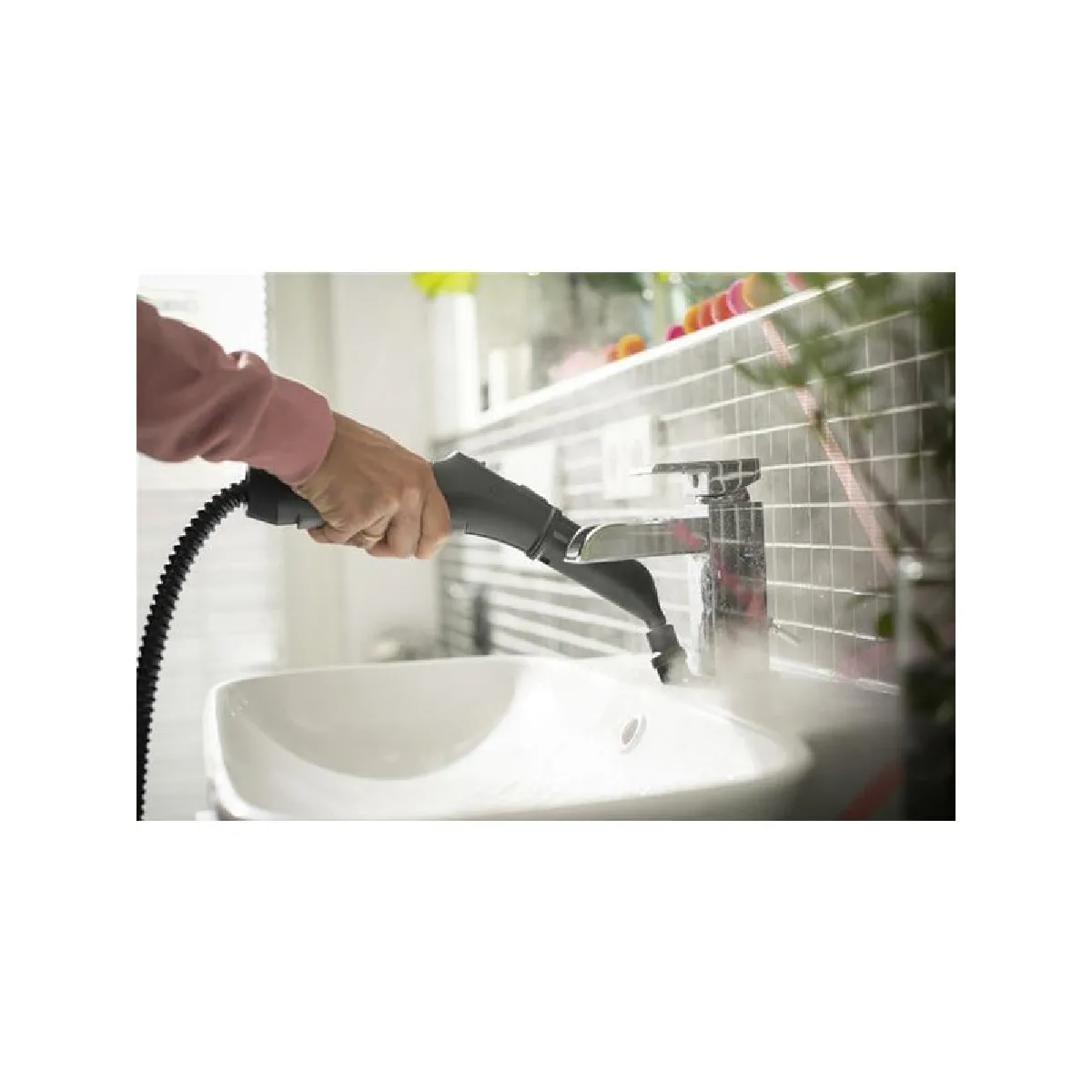 - Accessoires : brosse ronde petite, buse à main, bonnette microfibres, buse à jet rectiligne, cartouche de détartrage