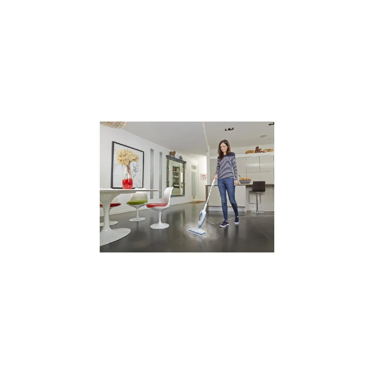 Balai vapeur - 1300 W - Chauffe 25 s - Autonomie 15 min - Poignée amovible - Câble 4,8 m - 1 patin microfibre