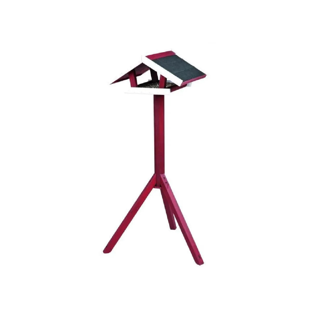 Mangeoire pour oiseaux avec pied - Dimensions : 46 × 22 × 44 cm/1,15 m - Coloris : rouge/blanc.