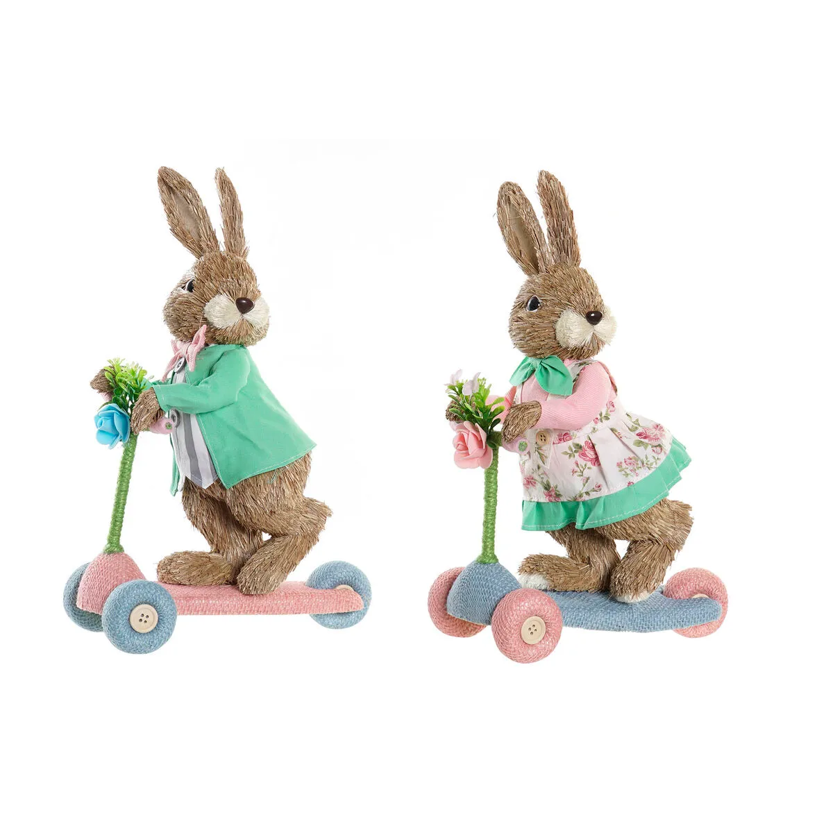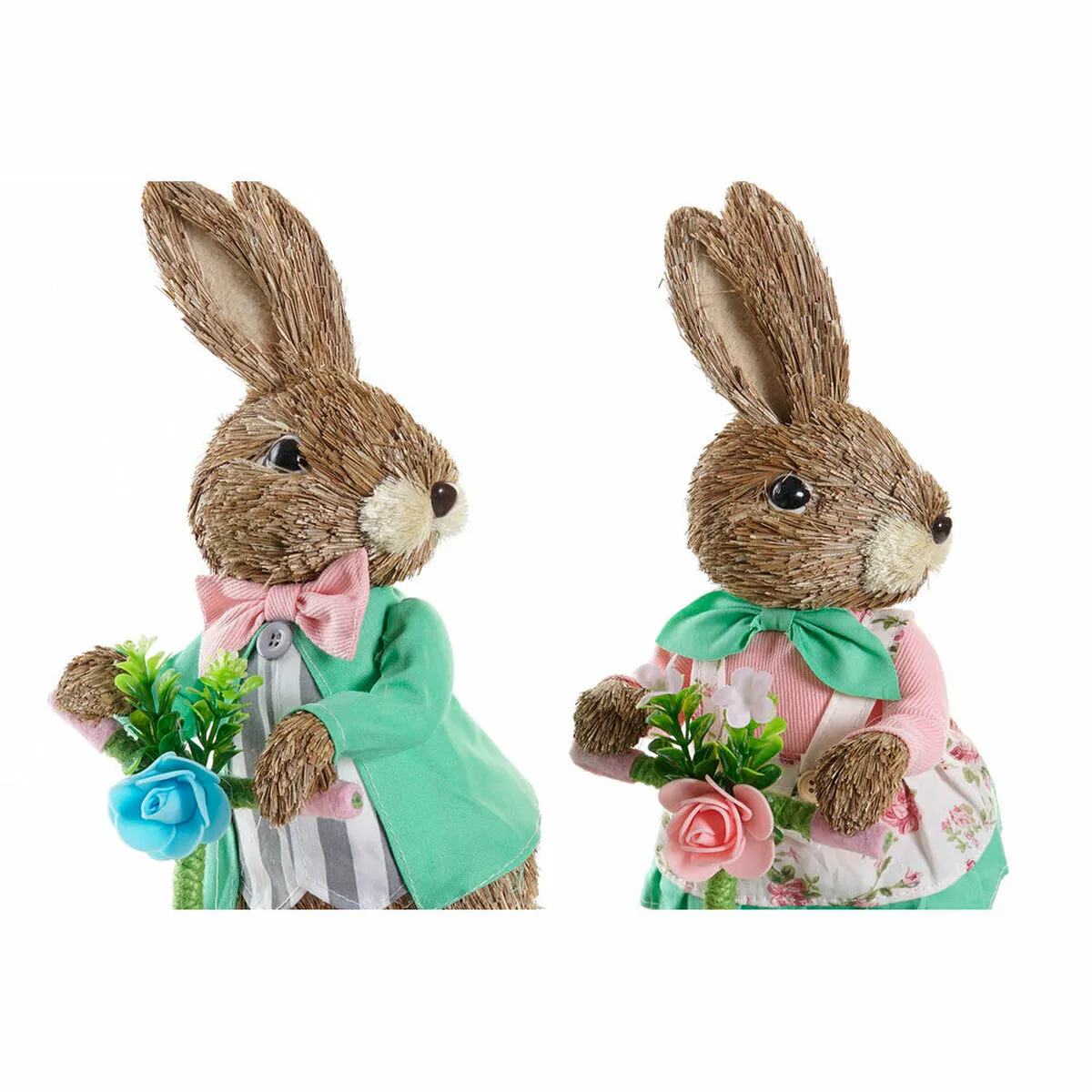Vous voulez donner une touche d'originalité à votre maison ? Vous y arriverez grâce au Figurine Décorative DKD Home Decor Bleu Rose Marron Polyester Lapin Vert Fibre Shabby Chic (22 x 13 x 34 cm) (2 Unités).