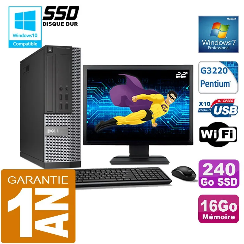 Côté évolutivité, 4 emplacements mémoire sont présents, ainsi qu'un PCIExpress x16 low profile et un PCIExpress x4 low profile pour cartes d'extension. Trois ports SATA facilitent l'ajout de stockage supplémentaire si nécessaire. Le boîtier en métal et plastique assure robustesse et accès aisé. Livré avec un pack clavier, souris et écran 22 pouces, le poste est opérationnel dès l'installation, avec Windows 7 Pro préinstallé pour un environnement familier aux usages professionnels classiques.