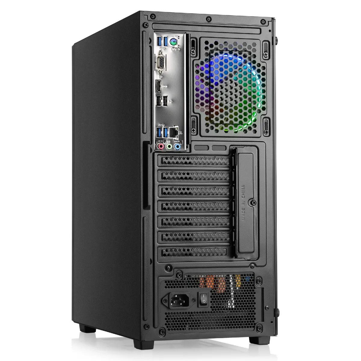 Le M10850H est un PC de jeu d'entrée de gamme idéal pour les joueurs eSports ambitieux et les joueurs occasionnels. Grâce au processeur AMD Ryzen 7 5700G à huit curs et à la carte graphique Radeon intégrée, vous découvrez ces titres sportifs populaires comme CS:GO, Overwatch 2 et les jeux en ligne Fortnite de manière fluide en résolution Full HD.