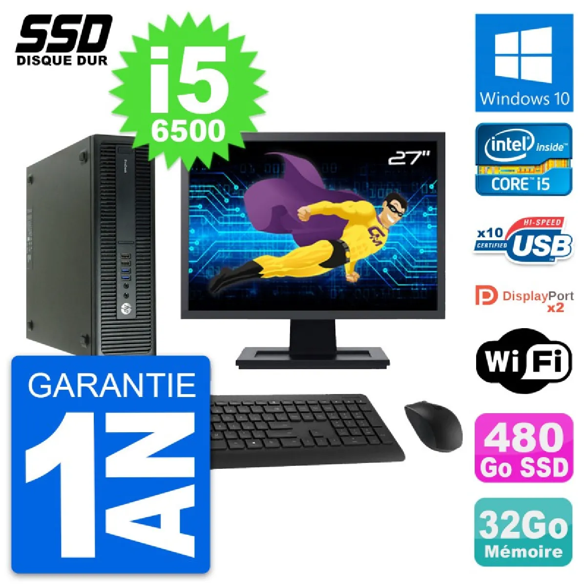 - Livré avec écran 27", clavier et souris