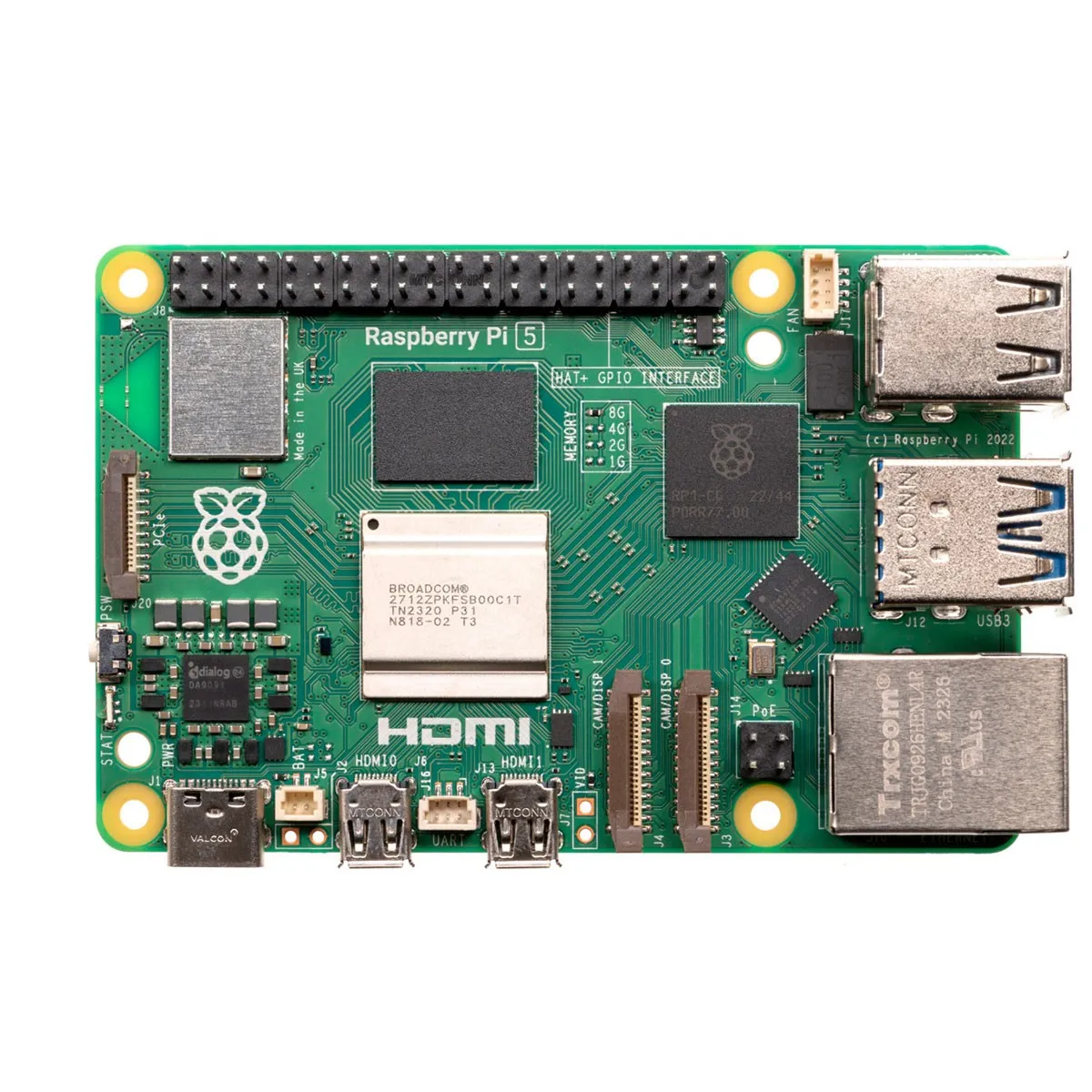 Mieux que Raspberry Pi, c-est Raspberry Pi 5 Plus que jamais, Raspberry Pi 5 se positionne comme la solution SBC idéale pour profiter d-une solution informatique moderne, performante et durable, tout en proposant la meilleure alternative aux ordinateurs plus classiques souvent trop énergivores, encombrant et qui peuvent s-avérer rapidement obsolètes â?¦ En reprenant les bases qui on fait le succès du Raspberry Pi 4, en apportant une qualité de finition encore inédite (allant même jusqu-aux soudures entièrement retravaillées à partir du principe Intrusive Reflow - ), des caractéristiques et performances grandement améliorées, et une connectique entièrement repensée, Raspberry Pi 5 est sans conteste le produit le plus abouti et le plus puissant disponible actuellement sur le marché ! Principaux Avantages du Raspberry Pi 5 Jusqu-à 3 fois plus de performances que sur Raspberry Pi 4 avec la puce BCM2712 avec un nouveau processeur Cortex-A76 (ARM v8 - 64 bits) quad-core de 2,4 GHz et un GPU VideoCore VII Diffusion possible sur 2 écrans simultanément avec une qualité constante 4K - 60 fps Nouvelle connectique embarquée : PCIe 2.0, Debug, RTC, â?¦ Encore 2 fois plus rapide que la version précédente grâce à un port micro-SD haute vitesse (SDR104) et 2 ports USB 3.0 jusqu-à 5Gbps en simultané Bouton d-alimentation sécurisé ON/OFF Caractéristiques Puce Broadcom BCM2712 avec processeur Quad-core ARM Cortex-A76 (ARM v8 - 64 bits) de 2,4 GHz, avec 512KB L2 caches et 2MB partagé L3 cache GPU VideoCore VII, compatible avec OpenGL ES 3.1, Vulkan 1.2 - 800 Mhz SDRAM LPDDR4X-4267 de 4GB ou 8 GB (selon version) Bouton d-alimentation ON/OFF Alimentation 5V/5A DC via USB-C (compatibilité réduite avec l'Alimentation officielle pour Raspberry Pi 4 15.3W USB*) CONNECTIQUE Interface PCIe 2.0 avec connecteur 16 pins- 0,50 mm FFC (requiert un FFC indépendamment contrôlé) 2x ports Micro-HDMI - 4Kp60 avec prise en charge HDR, diffusion simultanée sans perte de qualité et Décodeur 4Kp60 HEVC intégré Port Micro-SD, avec prise en charge du mode haute vitesse (SDR104) 2x ports USB 3.0 jusqu-à 5Gbps en simultané 2x ports USB 2.0 40x broches GPIO 2x connecteurs MIPI DSI (affichage) / CSI (caméra) à 4 voies x2 Connecteurs pour (L-utilisation d-un ventilateur est fortement recommandé pour Raspberry Pi 5**) Connecteur RTC pour Horloge en temps réel officielle RÃ?SEAUX Gigabit Ehternet avec prise en charge PoE+ (nécessite un HAT PoE+ non inclus) Wi-Fi 802.11ac double bande Bluetooth 5.0 / Bluetooth Low Energy (BLE) SOUDURE & IDENTIFICATION ''Intrusive reflow'' : technologie qui permet aux soudures situées à la face arrière de ne pas être visibles Chaque Raspberry Pi 5 porte un numéro d-identification unique et directement imprimé sur la carte é et sur l'emballage individuel La puissance RAM du Raspberry Pi 5 est maintenant directement indiquée via un petit encart et une soudure au niveau de face supérieure de la carte