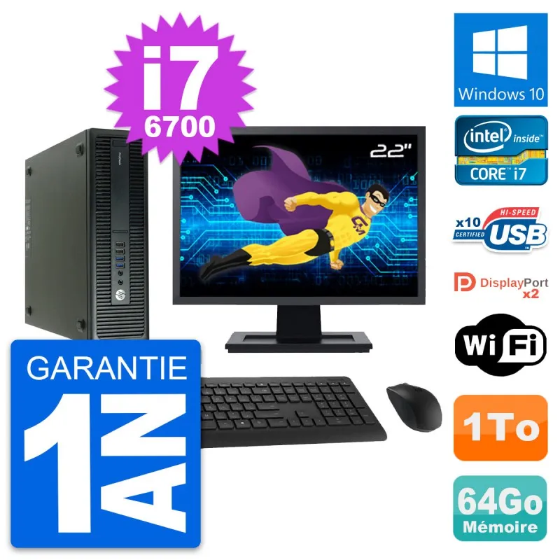 Ordinateur de bureau - Intel Core i7 - DDR4 - HDD - Wi-Fi - Windows 10 - écran