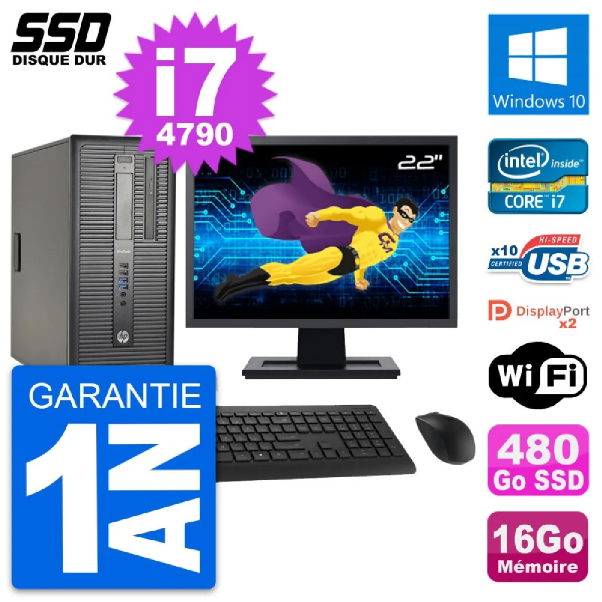 Pensé pour la bureautique quotidienne, cet ensemble réunit une unité centrale HP ProDesk 600 G1 MT et un écran 22" pour une installation immédiate. Le processeur Intel Core i7-4790 et les 16 Go de mémoire DDR3 assurent une ouverture rapide des applications et une bonne fluidité multitâche. Le SSD de 480 Go réduit les temps d'accès, tandis que Windows 10 préinstallé avec les périphériques clavier et souris permet un démarrage opérationnel dès la première mise sous tension. La connectique variée, incluant DisplayPort, VGA et RJ-45 Gigabit, facilite l'intégration dans un poste de travail existant et la connexion à différents écrans et réseaux filaires.