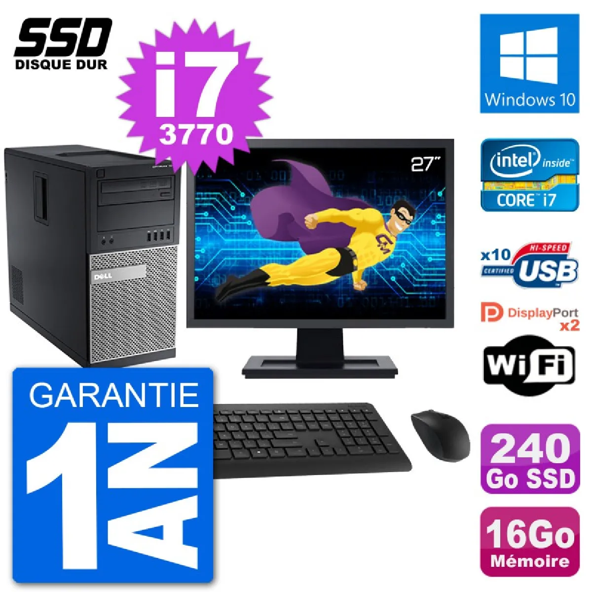 PC de bureau DELL Optiplex 7010 MT avec écran 27"