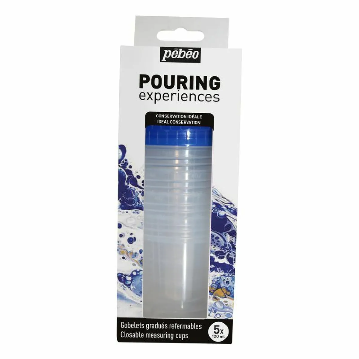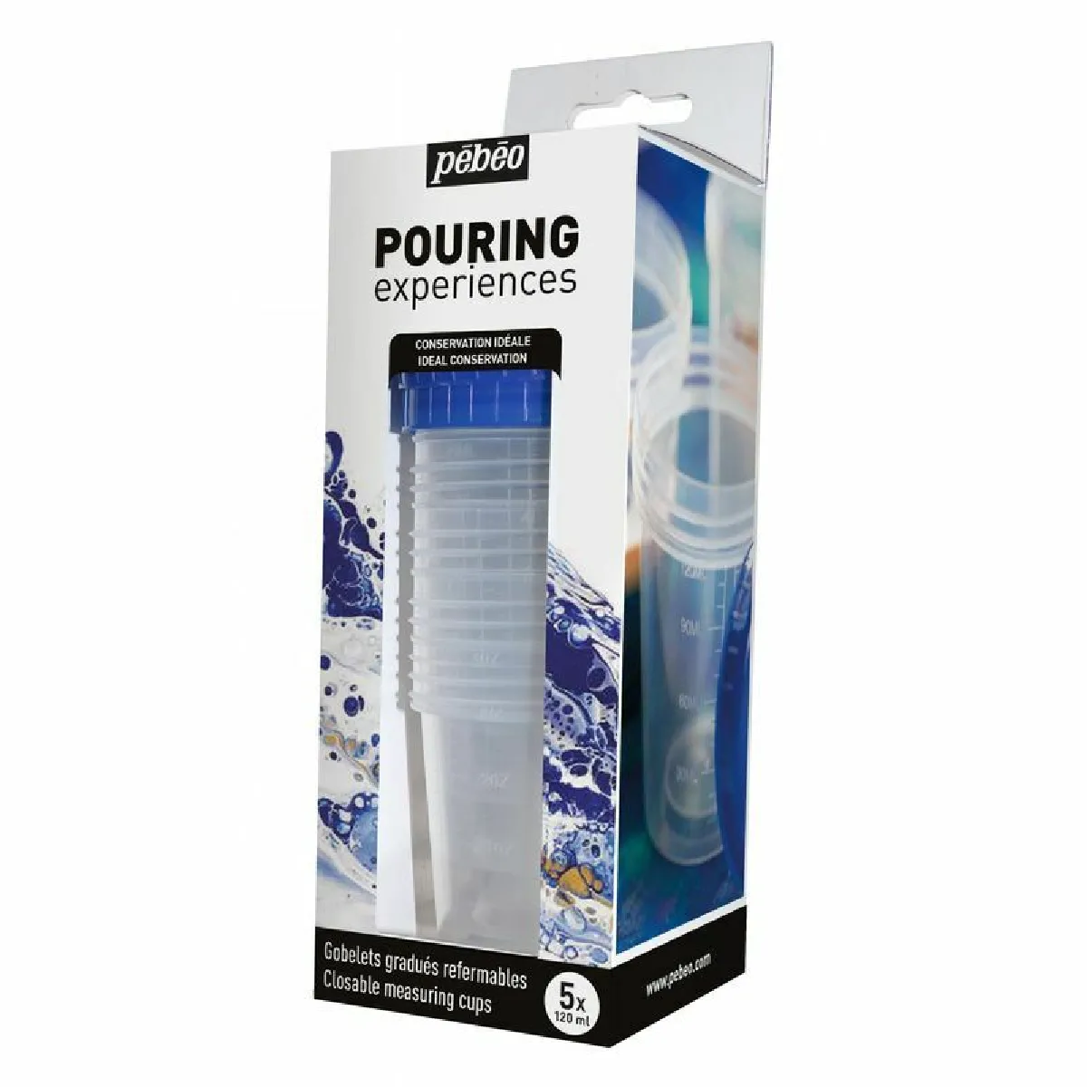 5 verres gradués avec couvercle pour pouring. Le pouring aussi appelé « dripping » est un art abstrait en peinture qui consiste à superposer des couleurs sur un support sans utiliser de pinceau, il s'agit de laisser couler la peinture sur la toile. Le pouring est apprécié et en vogue grâce à son rendu marbré. Ces gobelets réutilisables sont idéaux pour réaliser vos créations en pouring. Multi-tâches, vous pouvez les utiliser pour mélanger, doser ou encore conserver les mélanges de peinture. Format : 120 ml.
