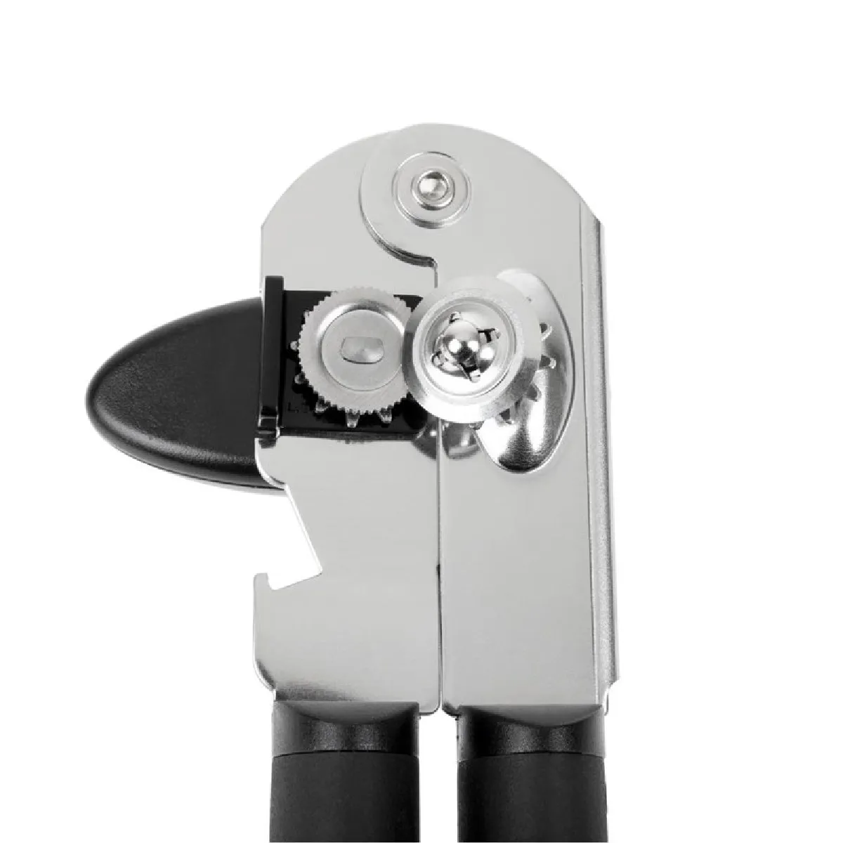 Ouvre-boîte manuel - Lame en acier inoxydable - Poignées coussinées - Bouton ergonomique - Décapsuleur intégré