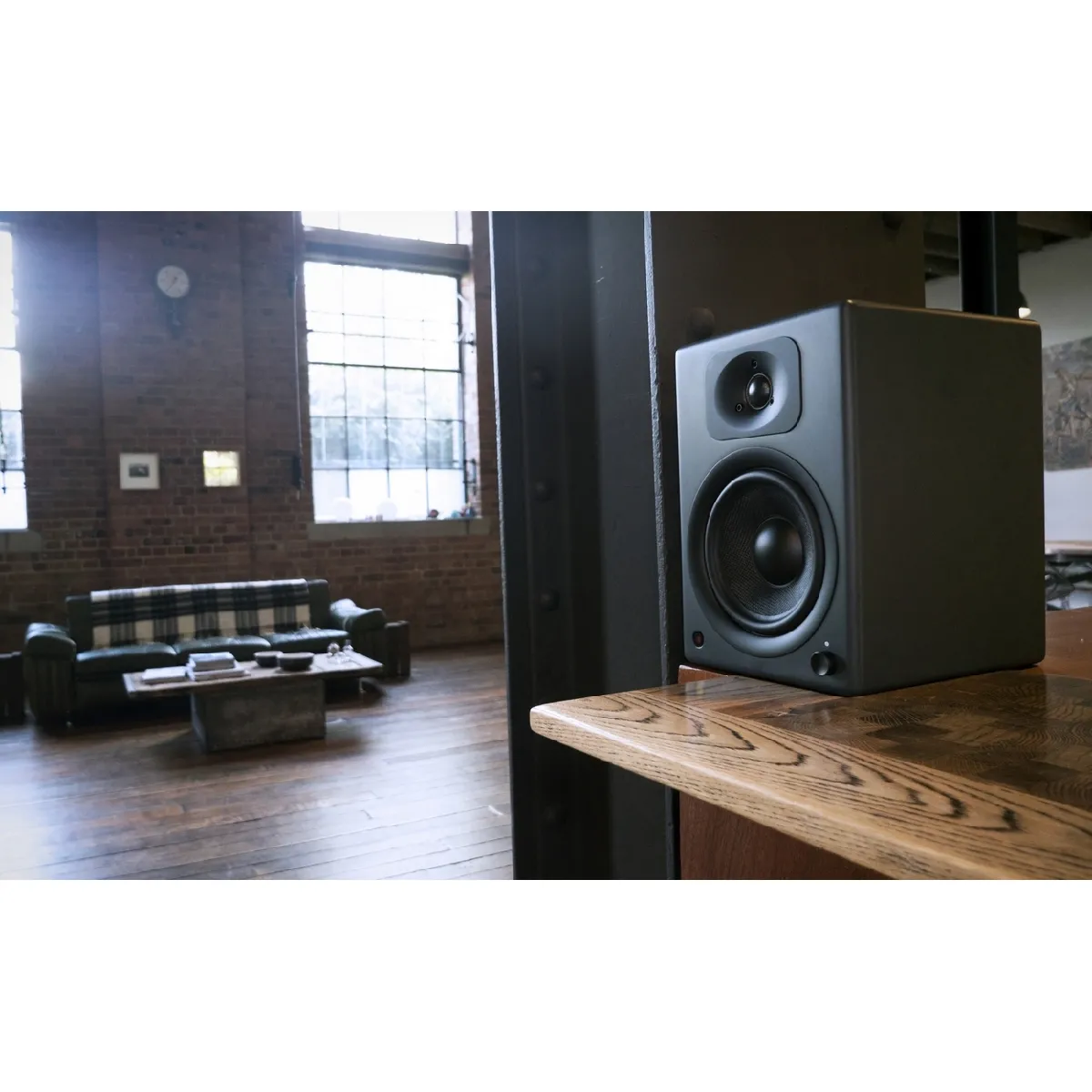 Conçues pour rester discrètes, ces enceintes s'intègrent facilement grâce à leur finition anthracite et à un gabarit mesuré. La configuration se fait sans complexité : choisir la source, régler le volume et profiter. La réponse de 45 à 22 000 Hz vise un équilibre entre clarté et présence pour des contenus variés, du podcast au film. La puissance de 60 W soutient l'écoute de proximité comme un usage dans une pièce de vie.