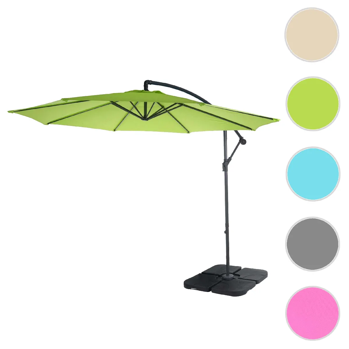- Parasol déporté avec toile d'environ 295 cm de diamètre et envergure maximale de 300 cm