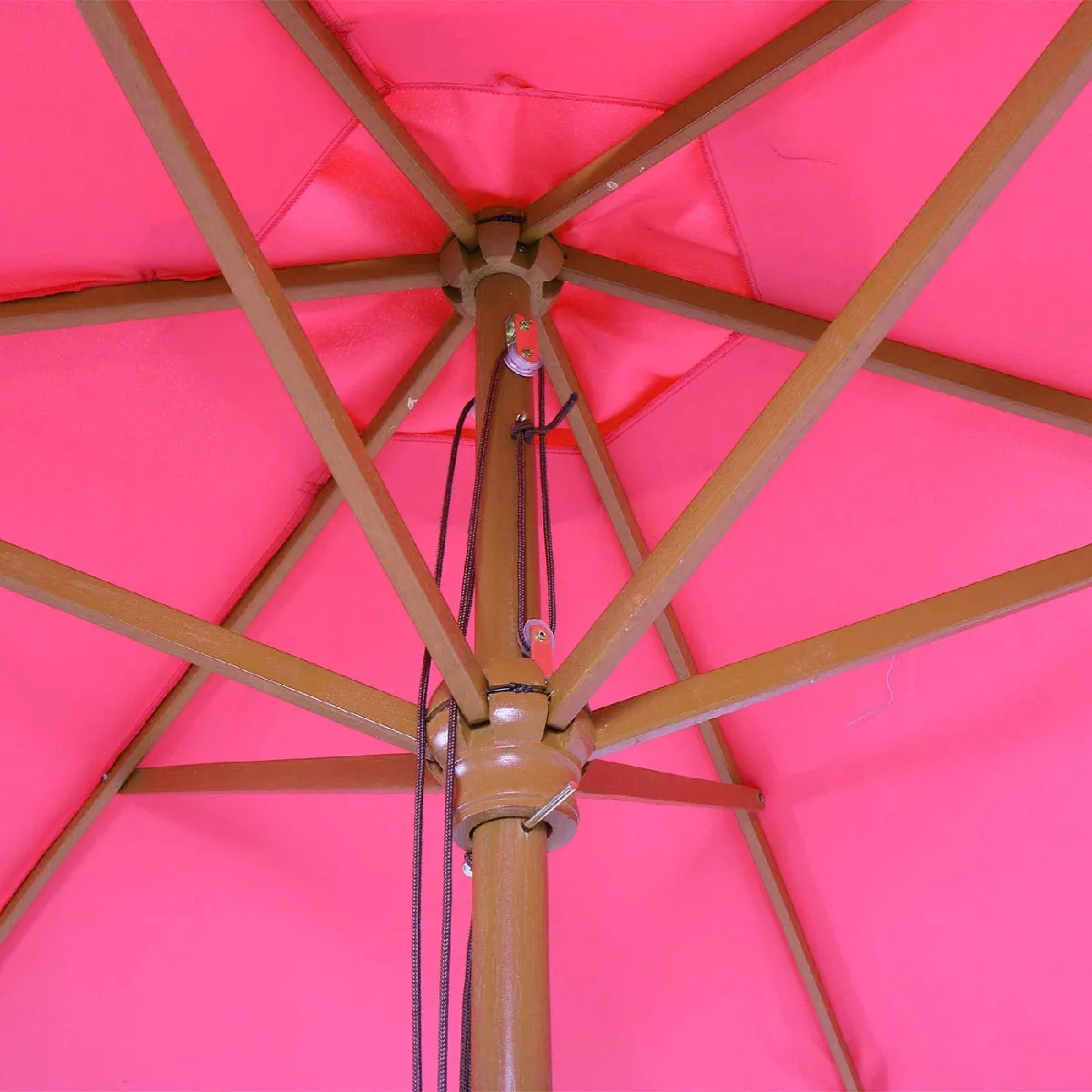 Parasol de jardin - Mécanisme à corde - Protection UV 50 - Structure bois - Couverture en polyester