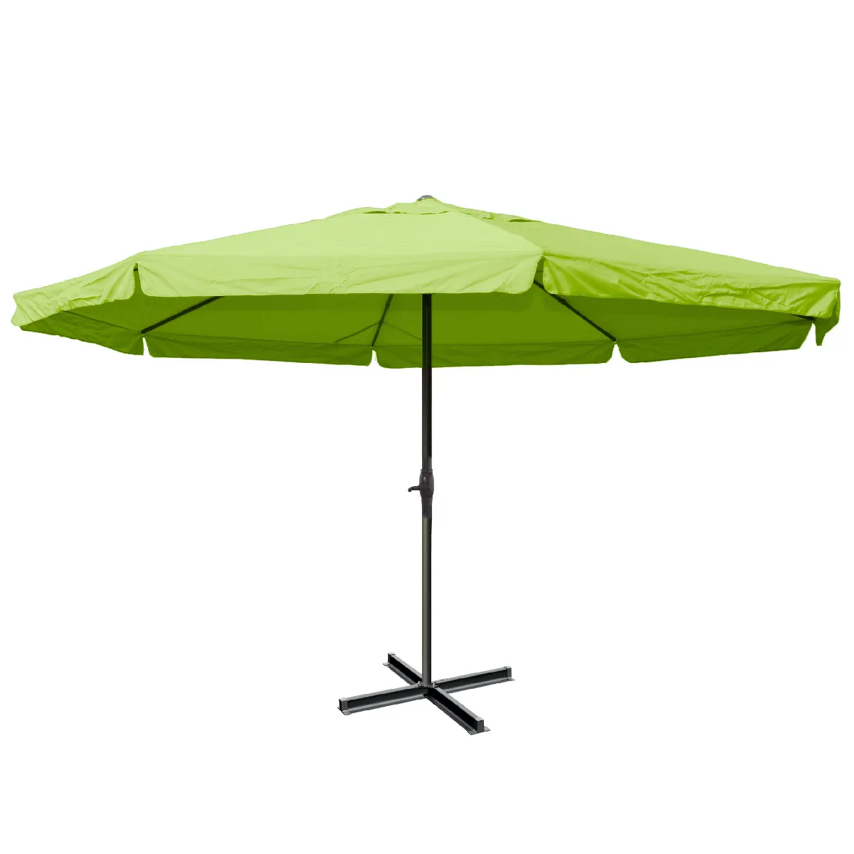 L'ombre généreuse d'un diamètre de 5 m crée une zone fraîche pour un repas, un coin lecture ou une aire de jeux. La structure en aluminium inoxydable et la toile 100 % polyester 250 g/m² offrent une protection stable et durable pour les usages extérieurs. Grâce à sa manivelle facile à manipuler, l'ouverture se fait sans effort, tandis que les baleines renforcées pour une meilleure tenue assurent la stabilité de la toile. Livré avec pied, ce parasol rond vert s'intègre à une terrasse, un jardin ou un espace de réception et permet diverses solutions d'ancrage adaptées au sol disponible.