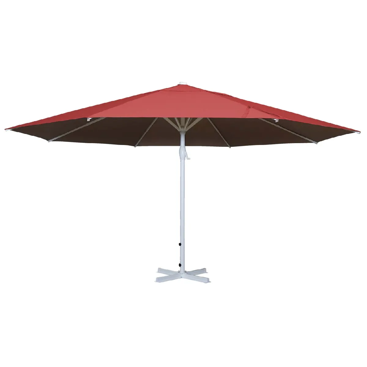 Le mât solide de ø 6,7 cm et les tiges renforcées en aluminium apportent une stabilité adaptée aux usages intensifs. Le mécanisme à manivelle facilite l'ouverture et la fermeture pour ajuster rapidement l'ombre selon l'ensoleillement. Le parasol pèse environ 28 kg et nécessite un support d'environ 100 kg (non fourni) pour une fixation fiable sur béton ou sol équivalent. L'installation sur une zone protégée du vent et l'entretien régulier prolongent la fonctionnalité et la durée d'usage.