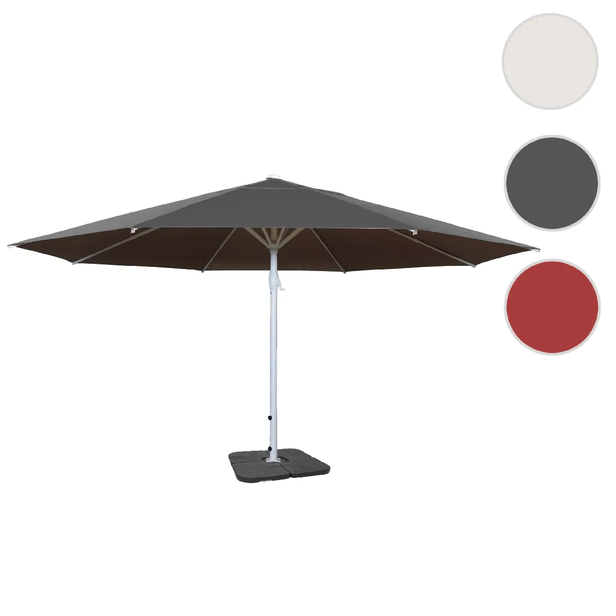 - Dimensions clés : hauteur totale 360 cm, hauteur de passage 205 cm, poids parasol env. 28 kg