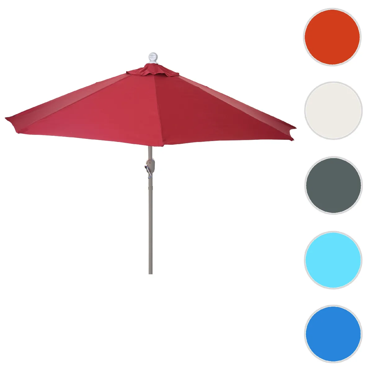 Le mât de 4 cm de diamètre en aluminium inoxydable contribue à une stabilité maîtrisée et une bonne tenue dans le temps. Les baleines télescopiques 1,2 x 2 cm permettent un repliage simplifié à proximité d'une rambarde, pratique sur les petites surfaces. La toile résistante à l'eau et aux intempéries, avec une résistance à la lumière de niveau 4, préserve la teinte bordeaux lors d'une utilisation régulière. L'aération supérieure favorise la circulation de l'air pour un confort thermique plus agréable sous la toile.