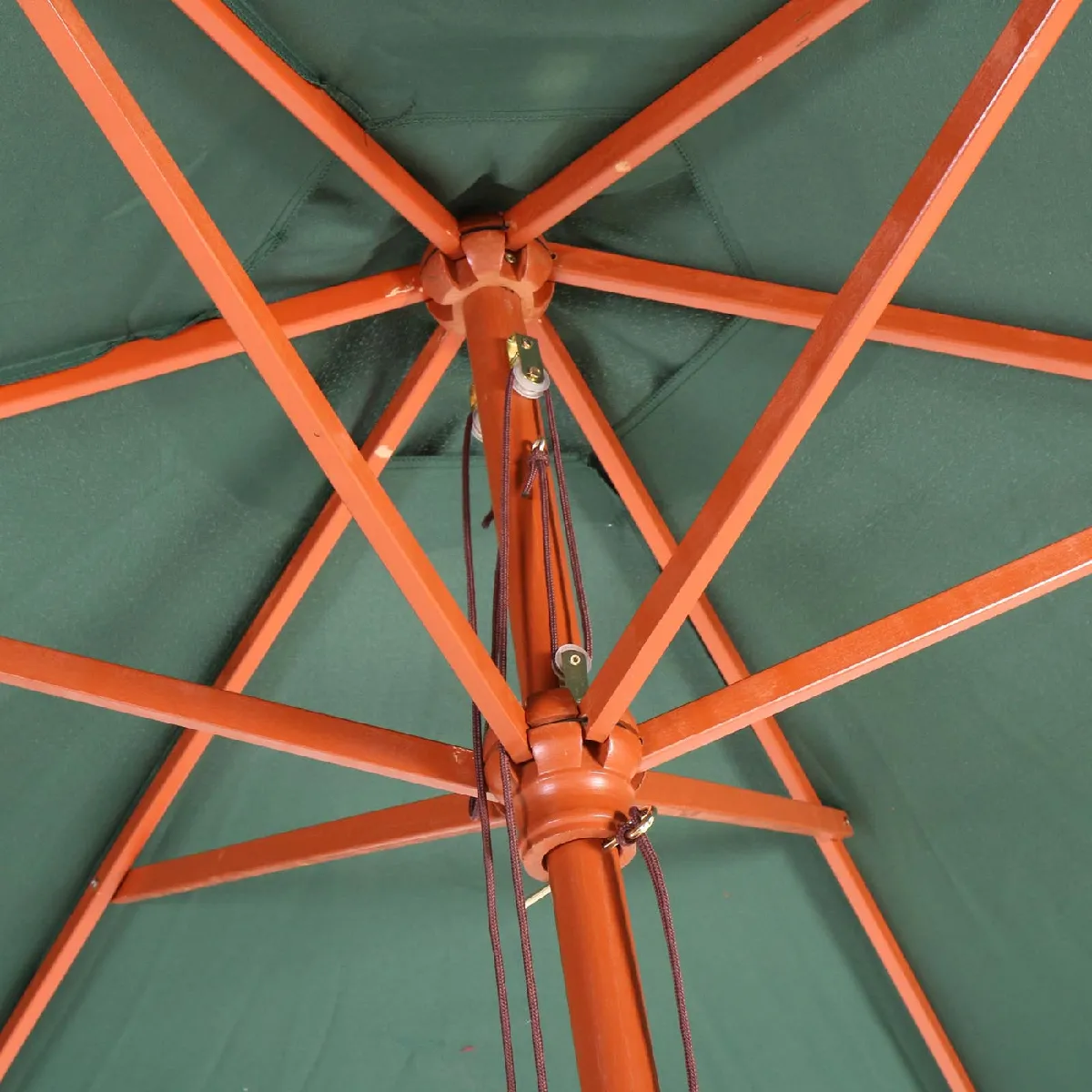 Le mécanisme d'ouverture à corde offre une manipulation fluide, idéale pour ajuster l'ombre sans effort. La toile en 100% polyester 180 g/m² avec traitement hydrofuge aide à faire face aux petites averses et facilite le séchage après usage. Le cadre en bois de peuplier avec jambes de force renforce la stabilité, tandis que la fente d'aération limite la prise au vent pour un climat plus agréable sous la toile. Avec un diamètre de 3 m pour couvrir une table familiale, il convient aux repas, aux lectures et aux pauses à l'abri des rayons lumineux.