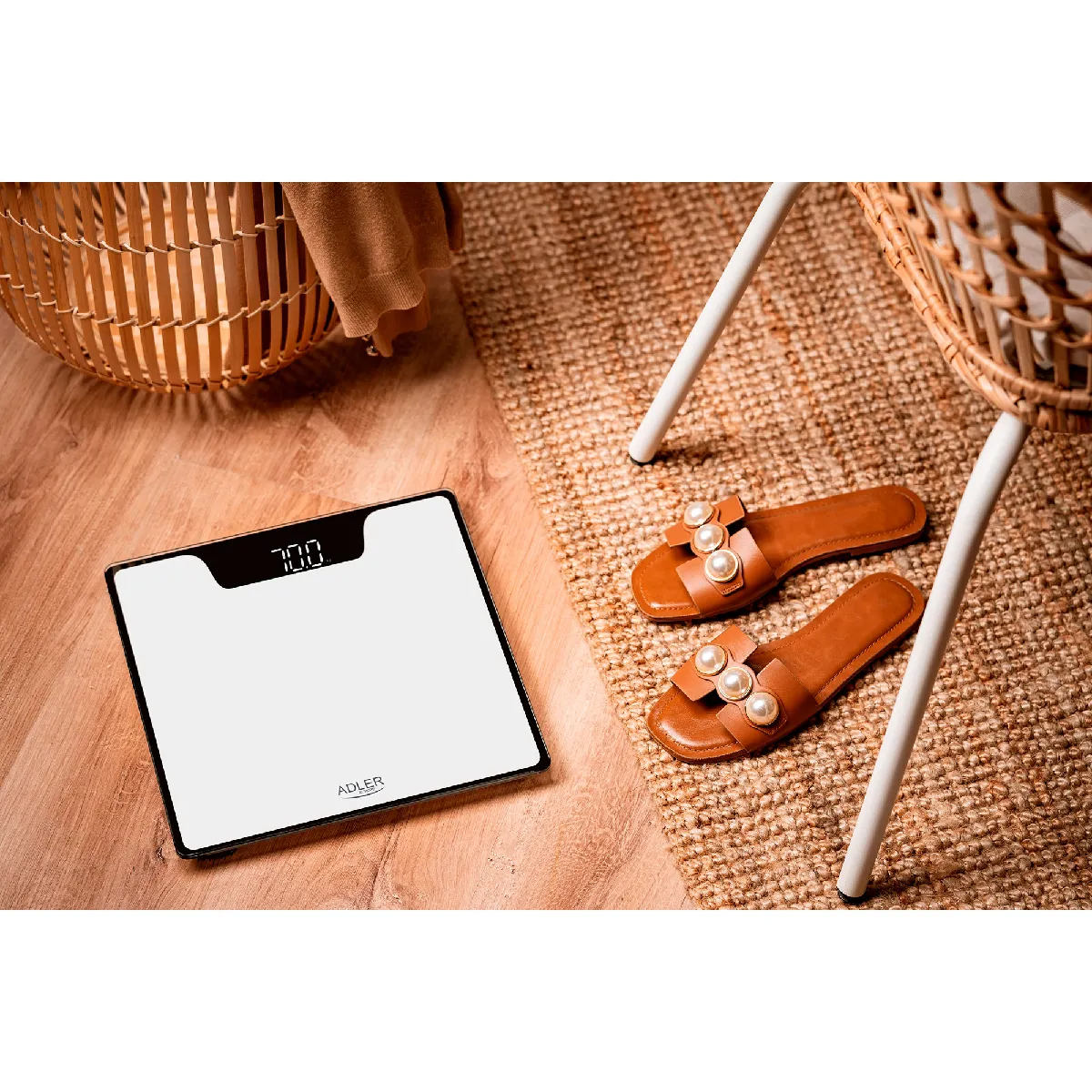 Pèse-personne électronique - Écran LED à haut contraste - Verre trempé 6 mm - Arrêt automatique - Indicateurs batterie faible et surcharge - Pieds antidérapants - Alimentation 2×AAA