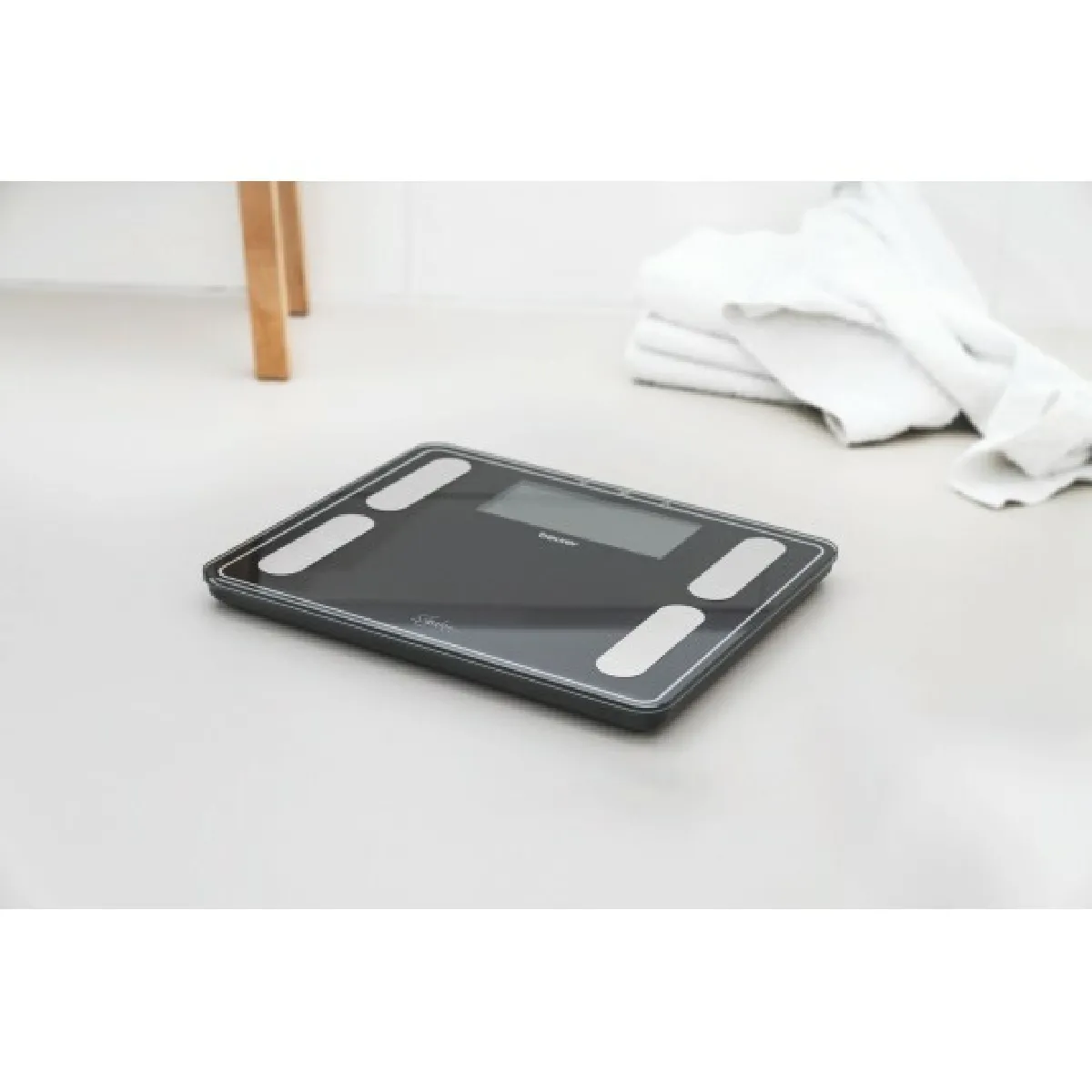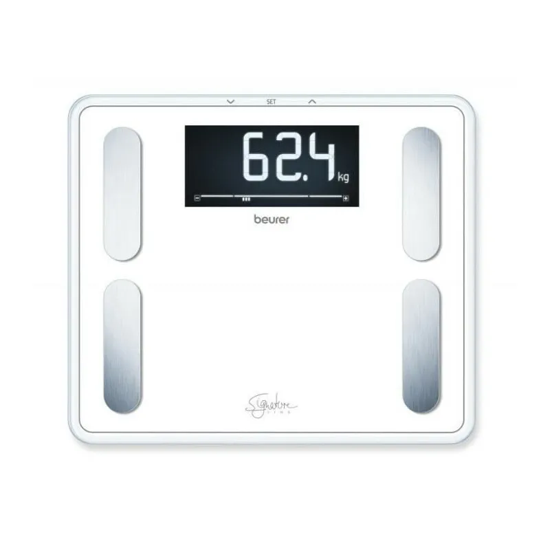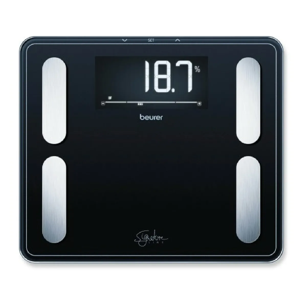 Grâce aux électrodes en acier inoxydable brossé et à la technologie d'impédancemétrie, la BF 410 délivre des mesures détaillées : poids, graisses, eau, pourcentage de muscle, masse osseuse, IMC, AMR/BMR. L'écran éclairé blanc sur fond noir améliore la lecture des résultats et l'interprétation des valeurs guide l'utilisateur dans l'analyse de ses données. Les 5 niveaux d'activité affinent les estimations métaboliques pour des résultats plus adaptés au profil déclaré.