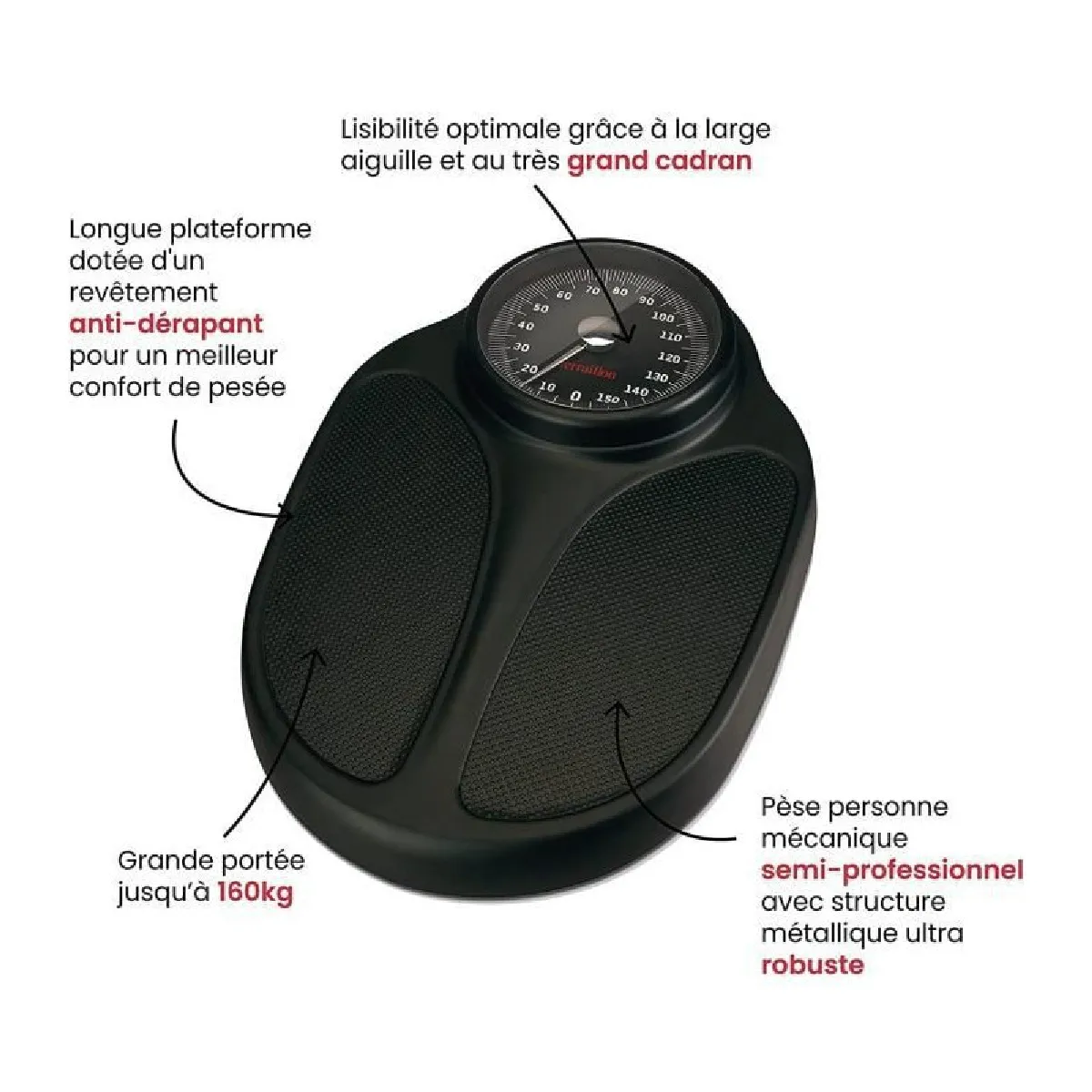 Pèse-personne mécanique à aiguille - Grand cadran lisible - Plateau ergonomique - Sans connexion - Graduation 500 g - Portée 160 kg