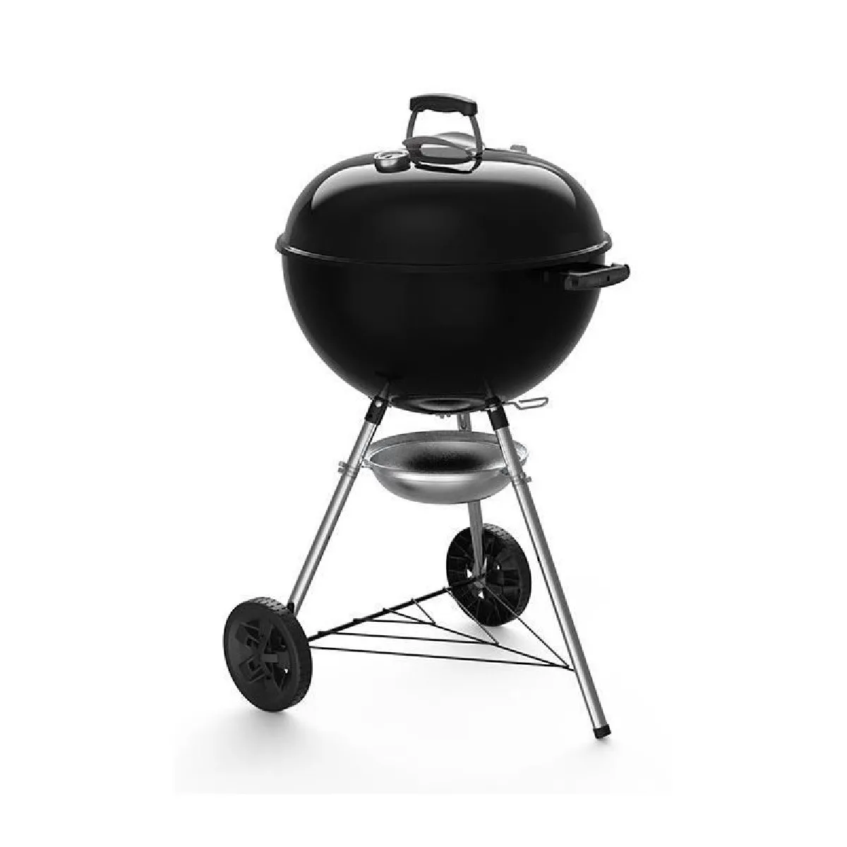 pBarbecue a charbon - Ø 57cm - Cuve et couvercle en acier émaillé - Grille de cuisson en acier chromé - Thermometre intégré au couvercle - Clapet d'aération en aluminium - Roues en plastique thermodurci - Pieds surélevés - Crochets porte-ustensiles intégrés - Cendrier plus profond - Bol doseur de briquettes/p
