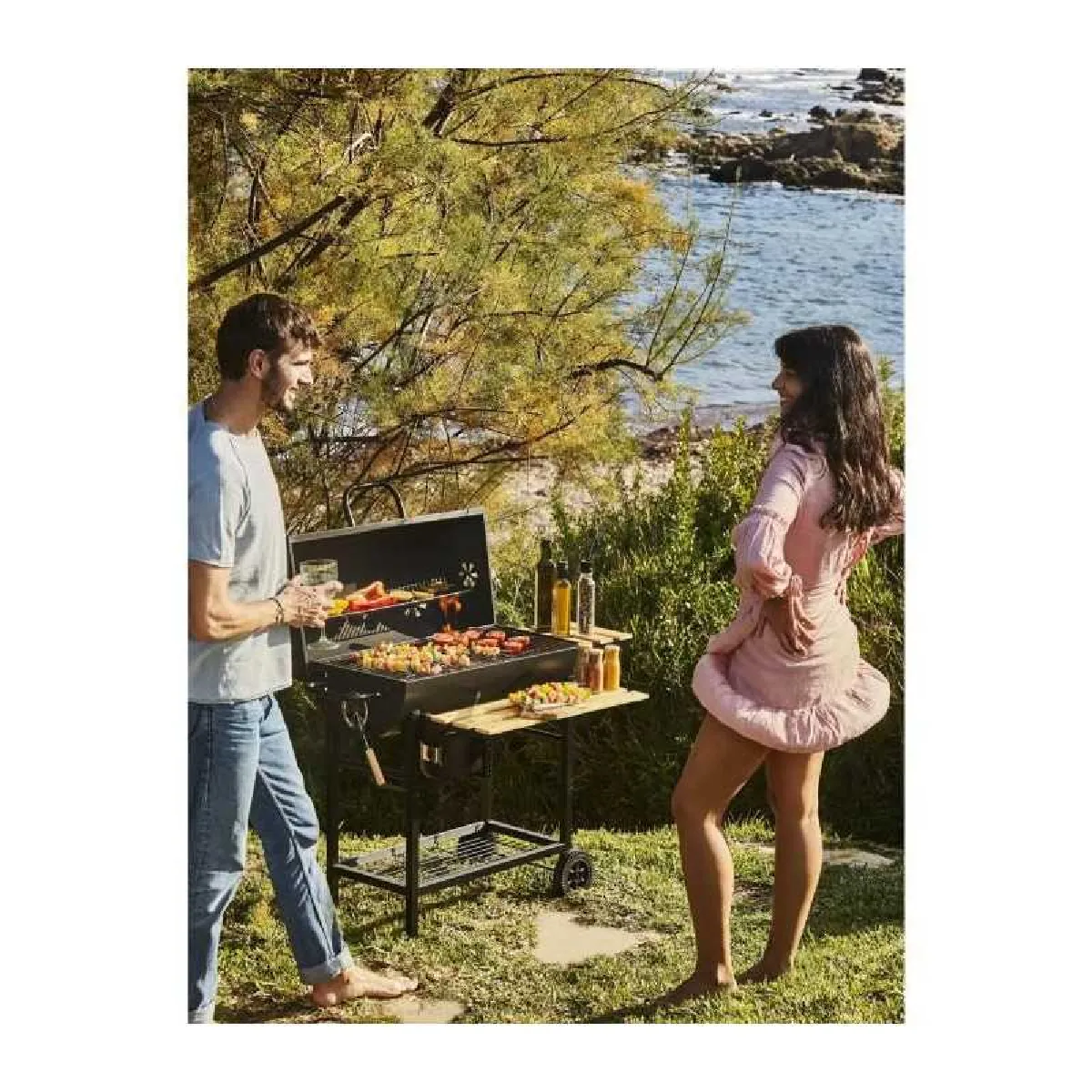 Ses dimensions L 71 x l 35 x H 108 cm facilitent l'organisation des repas au jardin, avec une surface de cuisson de 0,2485 m² pour gérer des portions multiples. Le type de cuisson : horizontale privilégie une saisie régulière, tandis que le type d'allumage : charbon assure la braise recherchée pour les grillades traditionnelles. Les aérations réglables aident à retrouver rapidement le bon niveau de chaleur après l'ouverture du couvercle. L'installation sur chariot offre un poste bien défini, simple à approvisionner en combustible et facile à surveiller. Chaque élément vise une utilisation fluide : préparation sur tablette, cuisson contrôlée, puis vidage rapide des cendres pour préparer la session suivante.