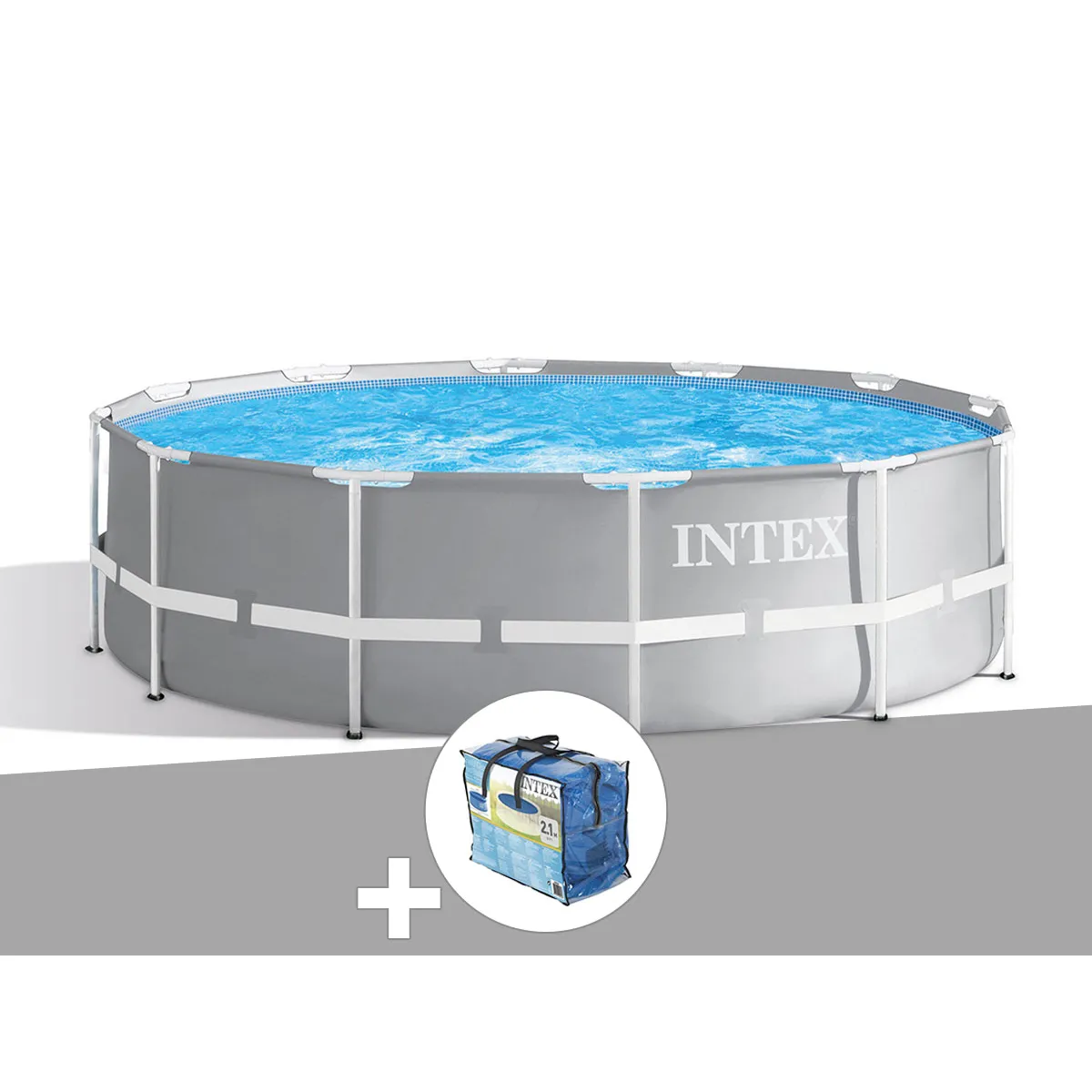 Commentaire vendeur : Ce kit piscine tubulaire Prism Frame ronde 3,66 x 1,22 m de la marque Intex est livrée en kit complet, à monter vous même.Il comprend :• Un liner triple épaisseur Intex gris• Les armatures (tubes) de la piscine• Un épurateur (filtre) à cartouche Intex 2,7 m³/h (type de cartouche : A) avec ses tuyaux Ø 32 mm inclus.• Une échelle de sécurité avec marches amovibles• Dimensions de la piscine : Ø 3,66 m x H.1,22 m• Espace de nage : Ø 3,66 m x H.1,07 m• Encombrement au sol : Minimum 3,66 x 3,66 mLe montage de la piscine est facile, et se réalise en 45 minutes à 2 personnes, avant le remplissage de la piscine.Cette piscine est garantie 2 ans par Intex.Découvrez le montage d'une piscine tubulaire ronde Intex en vidéo : Caractéristiques techniquesBâche de protection : NonCouleur : GrisDébit de filtration : 2,7 m³/hDiamètre : 3,66 mDimensions colis (L x l x H) : 38,70 x 51,10 x 129,20 cmDimensions extérieures (L x l) : 3,66 mÉchelle : OuiEpaisseur du liner : 58/100Filtration incluse : OuiForme : RondeGarantie : 2 ansHauteur : 1,22 mHauteur d'eau : 1,07 mLargeur : 3,66 mLongueur : 3,66 mMarque : INTEXMatière(s) : PVCModèle : Prism FramePoids : 47 kgSkimmer de surface : NonSurface de nage : 3,66 x 3,66 mTapis de sol : NonTemps de montage : 45 minType de filtration : À cartoucheType de produit : Piscine tubulaireVolume d'eau : 10,60 m³