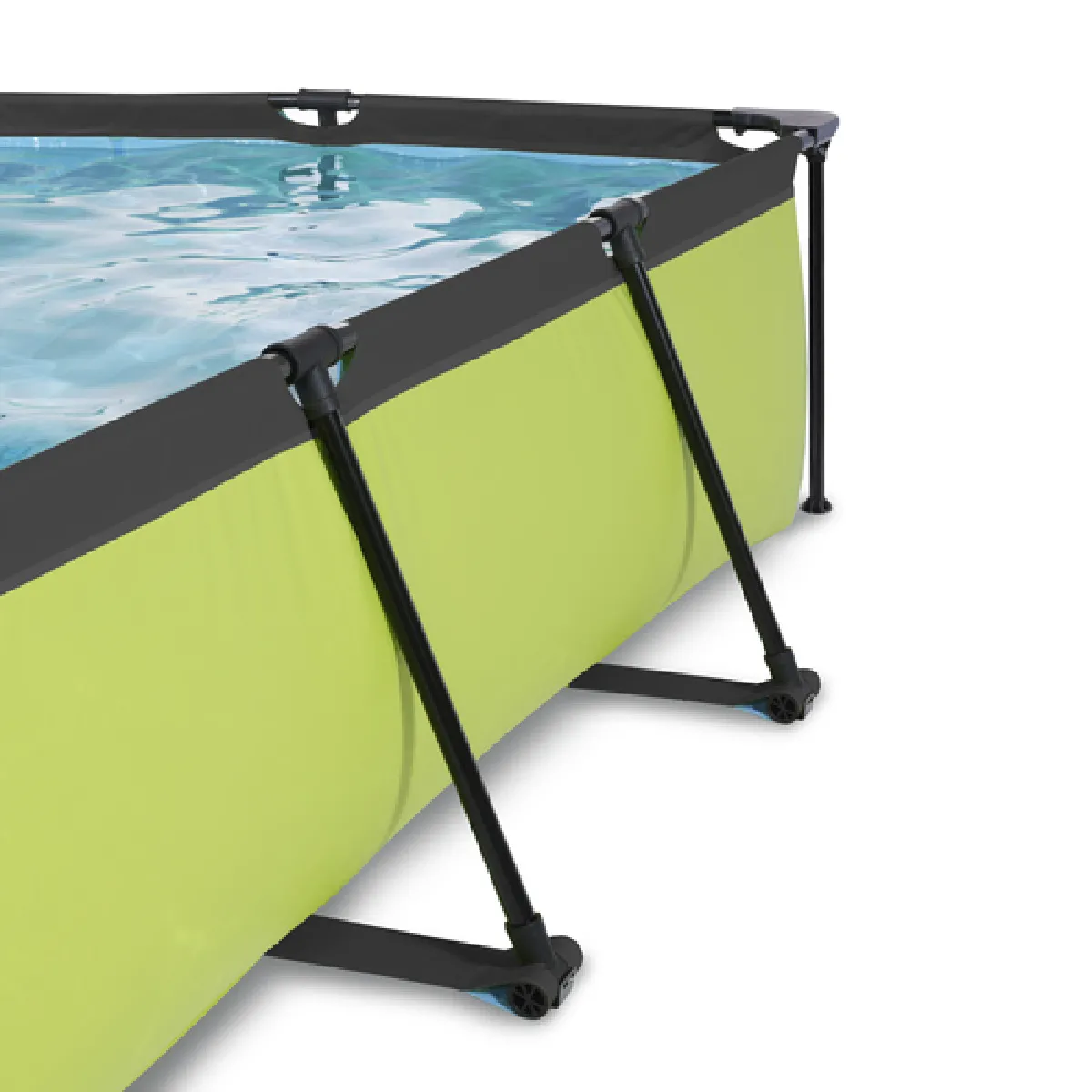 La piscine EXIT Lime 220 x 150 x 65 cm est une piscine tubulaire rectangulaire, de couleur verte. La piscine est équipée d'une pompe filtrante et se distingue des autres piscines par sa rafraîchissante couleur citron vert. Découvre la stabilité d'une piscine rectangulaire: la cadre en acier thermolaquée et et les coins forts de la piscine EXIT Lime garantissent la stabilité et la longévité de la piscine. La pompe filtrante incluse conserve l'eau propre et en mouvement afin d'éviter sa contamination. La joyeuse couleur vive et le cadre noir procure à la piscine Lime un aspect unique. L'intérieur de la piscine est bleu, pour une sensation de fraîcheur intemporelle. La piscine a un cadre bas et est donc facile d'accès pour les plus petits.